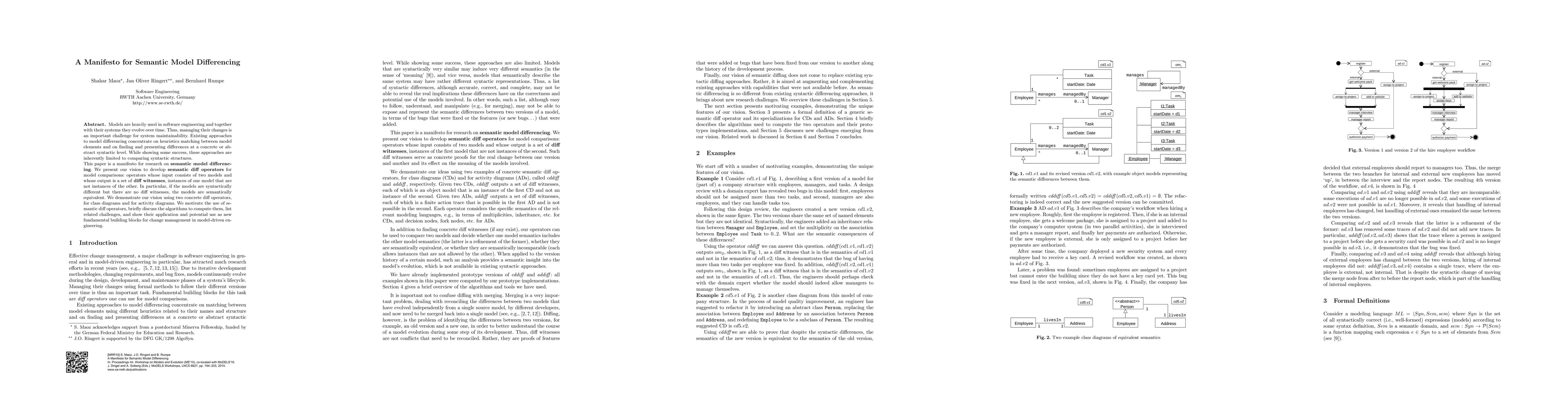 This paper advocates for the development of semantic model differencing tools to manage evolving software models, proposing semantic diff operators that identify differences in the meaning rather than just syntax. It demonstrates two such operators for class and activity diagrams, highlighting their potential to improve system maintainability in model-driven engineering.