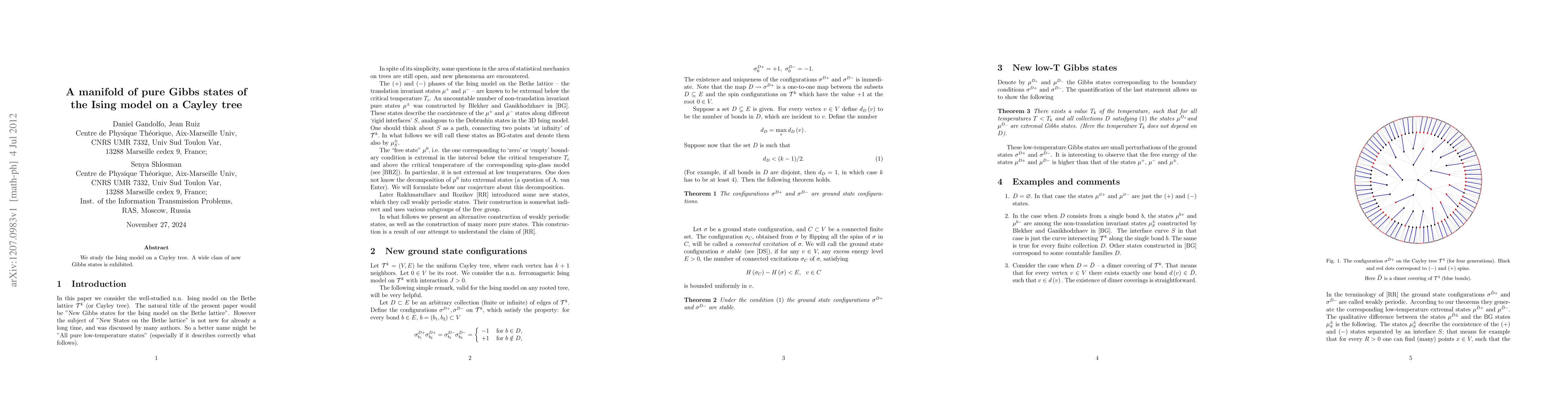 This paper explores the Ising model on a Cayley tree, identifying a diverse range of pure Gibbs states that exhibit unique statistical properties. The study provides insight into the complex phase transitions within this system.