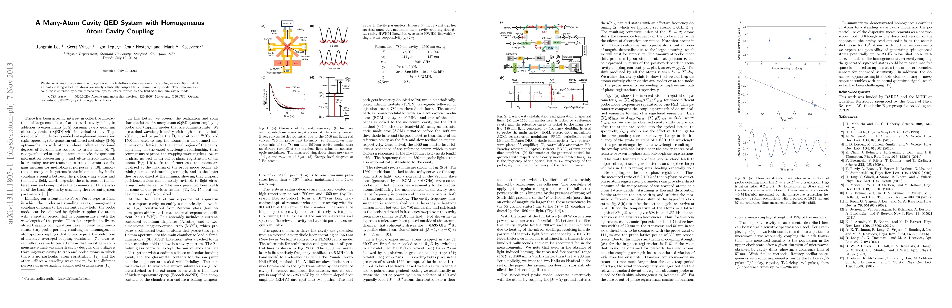 Summary: The paper presents a many-atom cavity QED system where rubidium atoms are uniformly coupled to a 780-nm cavity mode via a high-finesse dual-wavelength standing wave cavity, facilitated by a 1560-nm optical lattice. This setup achieves homogeneous atom-cavity coupling across all atoms.