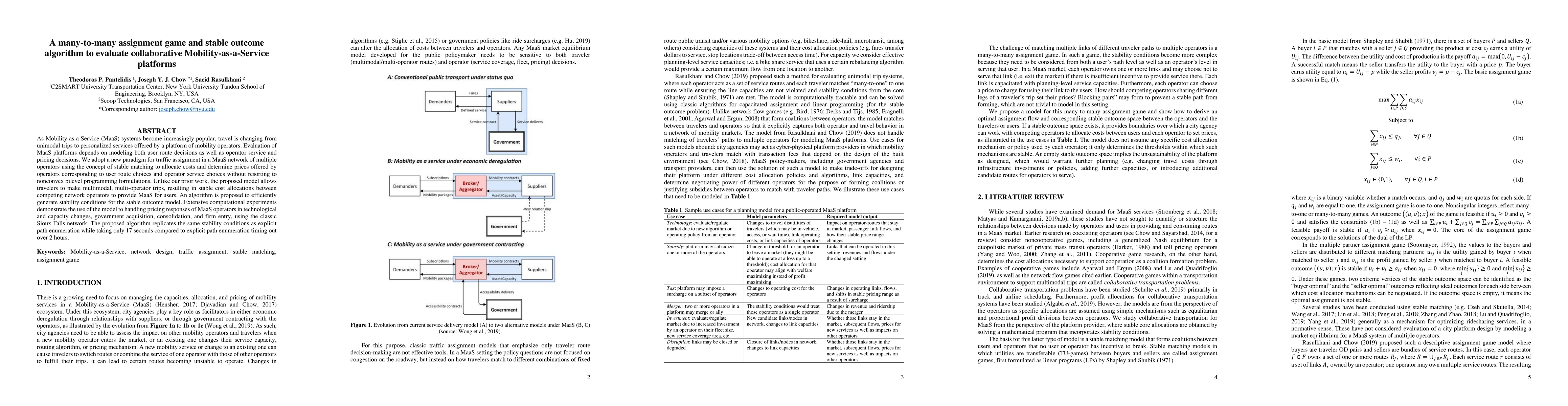 As Mobility as a Service (MaaS) systems become increasingly popular, travel is changing from unimodal trips to personalized services offered by a platform of mobility operators. Evaluation of MaaS platforms depends on modeling both user route decisions as well as operator service and pricing decisions. We adopt a new paradigm for traffic assignment in a MaaS network of multiple operators using the concept of stable matching to allocate costs and determine prices offered by operators corresponding to user route choices and operator service choices without resorting to nonconvex bilevel programming formulations. Unlike our prior work, the proposed model allows travelers to make multimodal, multi-operator trips, resulting in stable cost allocations between competing network operators to provide MaaS for users. An algorithm is proposed to efficiently generate stability conditions for the stable outcome model. Extensive computational experiments demonstrate the use of the model to handling pricing responses of MaaS operators in technological and capacity changes, government acquisition, consolidation, and firm entry, using the classic Sioux Falls network. The proposed algorithm replicates the same stability conditions as explicit path enumeration while taking only 17 seconds compared to explicit path enumeration timing out over 2 hours.