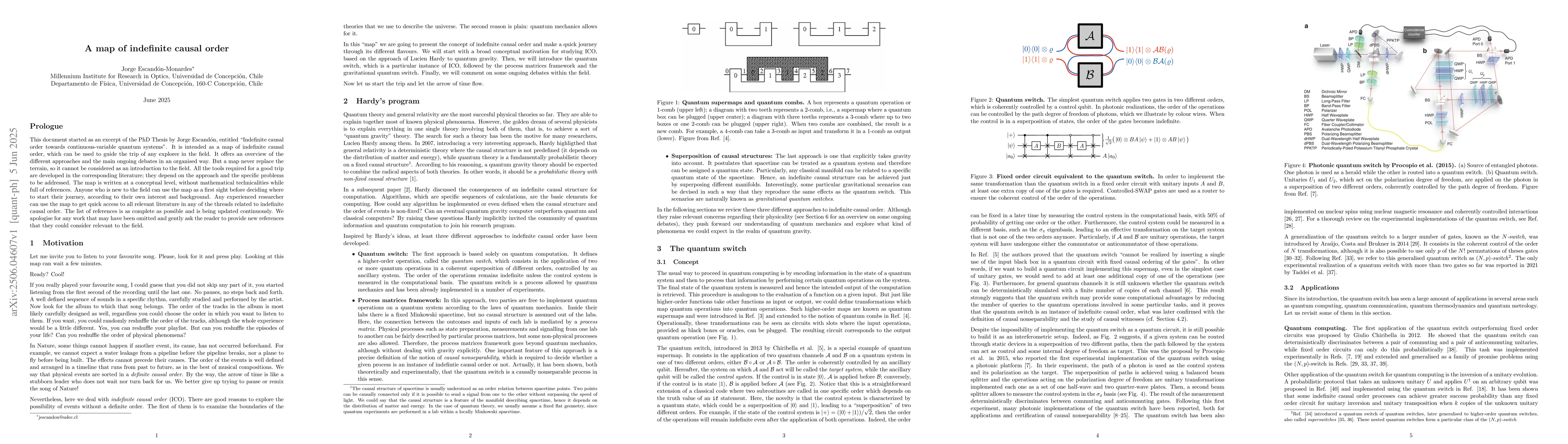 In this "map" we are going to present the concept of indefinite causal order and make a quick journey through its different flavours. We will start with a broad conceptual motivation for studying indefinite causal order, based on the approach of Lucien Hardy to quantum gravity. Then, we will introduce the quantum switch, which is a particular instance of indefinite causal order, followed by the process matrices framework and the superposition of causal structures. Finally, we will comment on some ongoing debates within the field. This document started as an excerpt of the author's PhD Thesis and is intended as a map of indefinite causal order, which can be used to guide the trip of any explorer in the field.