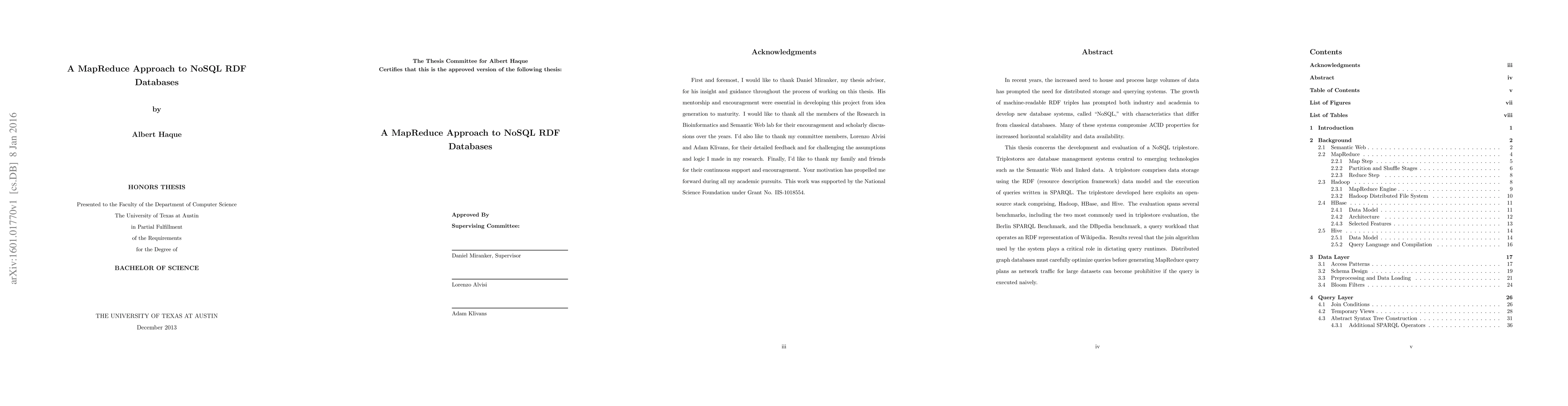 The approach combines MapReduce with HBase and Hive for RDF data management, introducing optimizations such as bloom filters and careful query planning to address the challenges of large-scale RDF data processing.