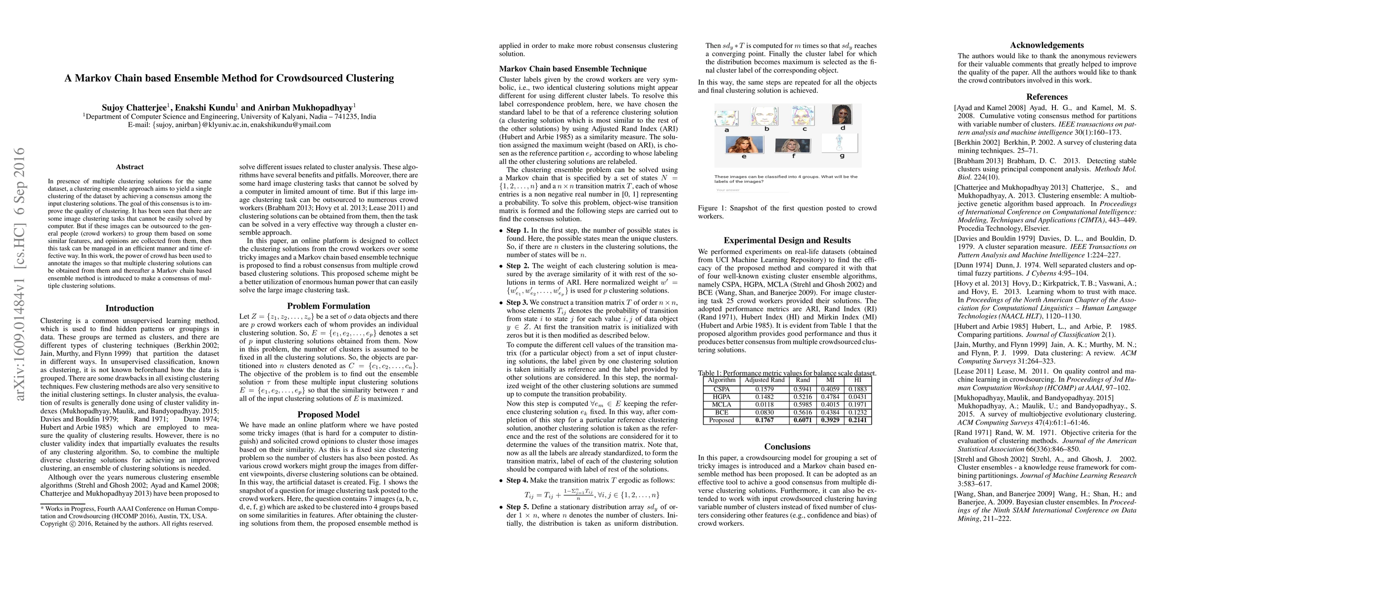 Researchers introduce a method using crowd workers to generate multiple clustering solutions for images, then use a Markov chain-based ensemble approach to achieve a consensus, improving the quality of clustering.