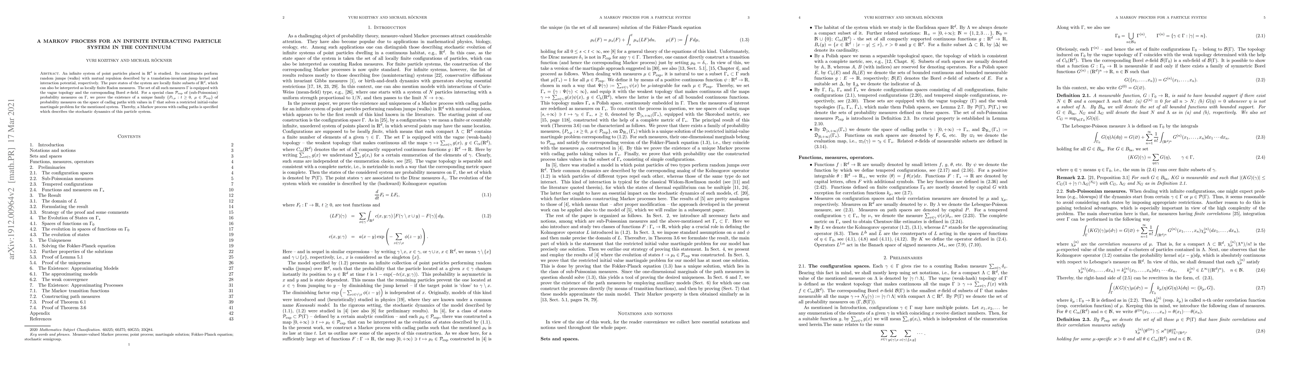 A Markov process is developed to model an infinite interacting particle system in a continuum, with unique cadlag paths that describe the stochastic dynamics of the system.