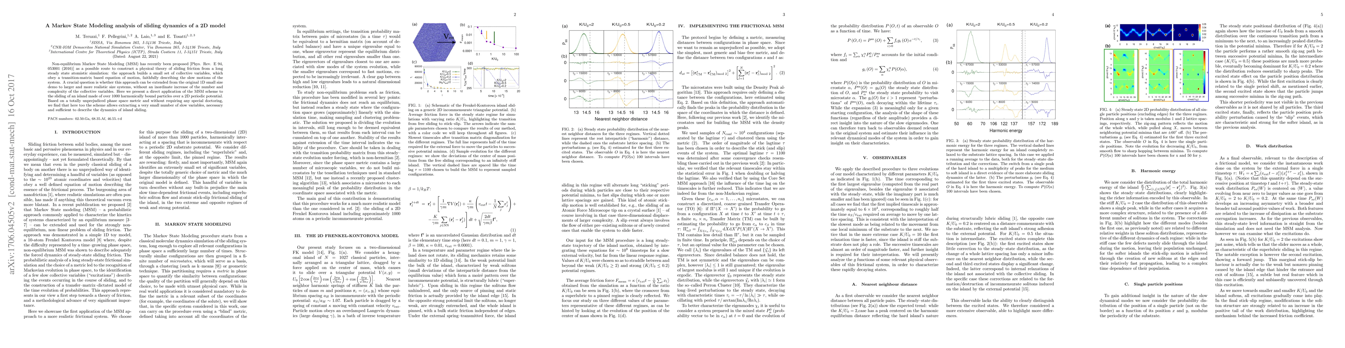 Researchers successfully applied Markov State Modeling to simulate the sliding of a 2D island made of particles, finding that a small set of slow variables can accurately describe its dynamics.