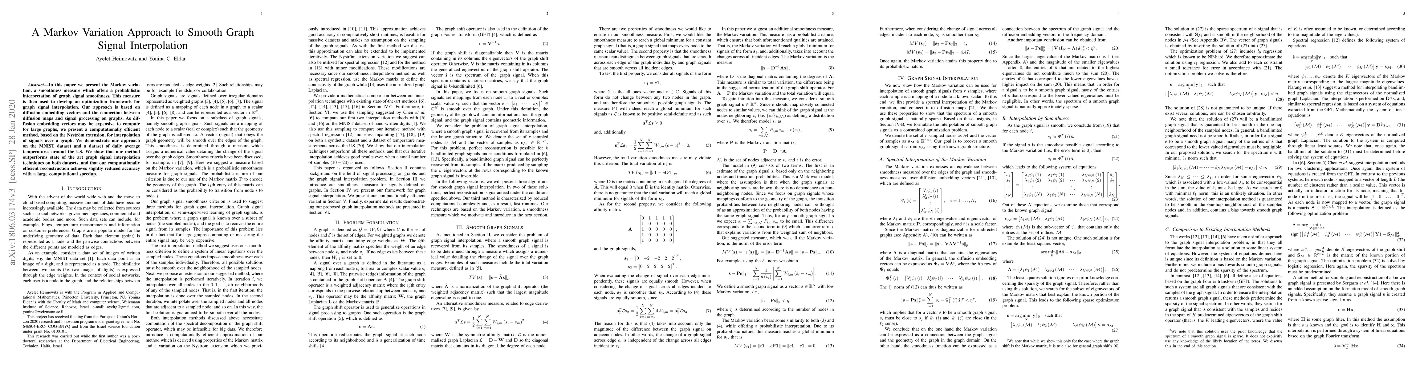This paper introduces a Markov variation measure for graph signal smoothness and uses it to develop an optimization framework for graph signal interpolation. It presents a computationally efficient method based on the Nyström extension for large graphs, demonstrating superior performance over state-of-the-art techniques on MNIST and US temperature datasets.