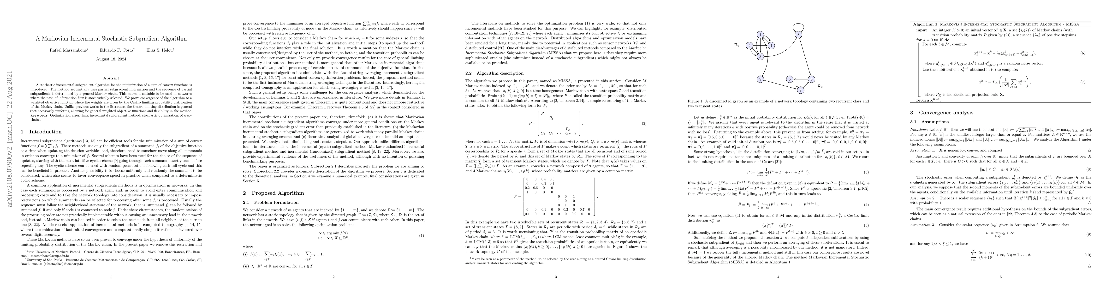 A new algorithm for minimizing a sum of convex functions is introduced, using partial subgradient information from a general Markov chain, with convergence to a weighted objective function based on the Ces\