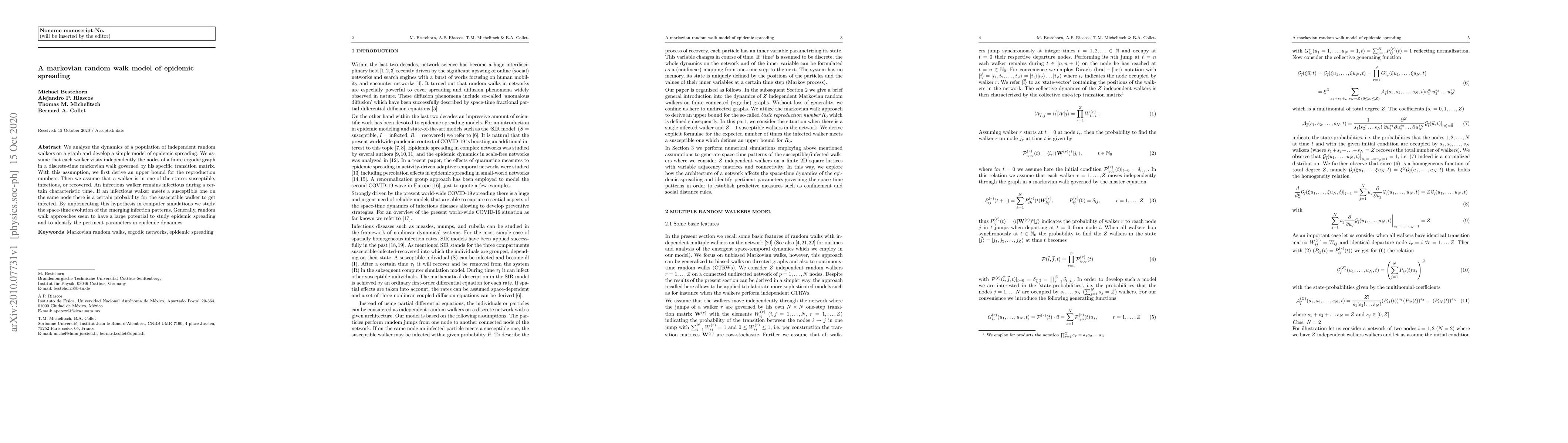 This paper develops a Markovian random walk model to study epidemic spreading on a graph, deriving an upper bound for reproduction numbers and simulating infection dynamics. The model shows significant potential for understanding epidemic patterns and identifying key parameters in epidemic dynamics.