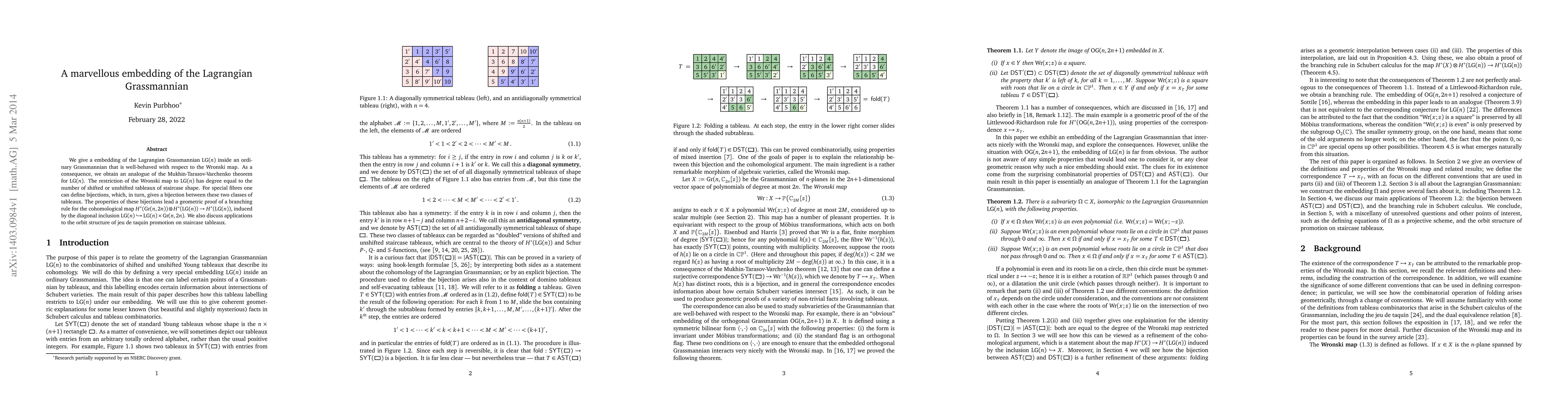 We give a embedding of the Lagrangian Grassmannian LG(n) inside an ordinary Grassmannian that is well-behaved with respect to the Wronski map. As a consequence, we obtain an analogue of the Mukhin-Tarasov-Varchenko theorem for LG(n). The restriction of the Wronski map to LG(n) has degree equal to the number of shifted or unshifted tableaux of staircase shape. For special fibres one can define bijections, which, in turn, gives a bijection between these two classes of tableaux. The properties of these bijections lead a geometric proof of a branching rule for the cohomological map H*(Gr(n,2n)) x H*(LG(n)) -> H*(LG(n)), induced by the diagonal inclusion LG(n) -> LG(n) x Gr(n,2n). We also discuss applications to the orbit structure of jeu de taquin promotion on staircase tableaux.
