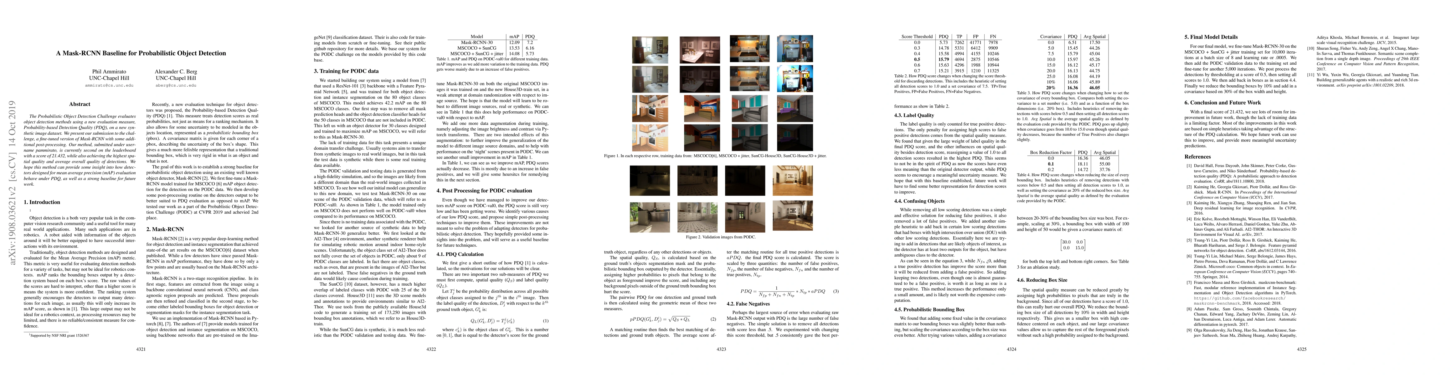 The Probabilistic Object Detection Challenge evaluates object detection methods using a new evaluation measure, Probability-based Detection Quality (PDQ), on a new synthetic image dataset. We present our submission to the challenge, a fine-tuned version of Mask-RCNN with some additional post-processing. Our method, submitted under username pammirato, is currently second on the leaderboard with a score of 21.432, while also achieving the highest spatial quality and average overall quality of detections. We hope this method can provide some insight into how detectors designed for mean average precision (mAP) evaluation behave under PDQ, as well as a strong baseline for future work.