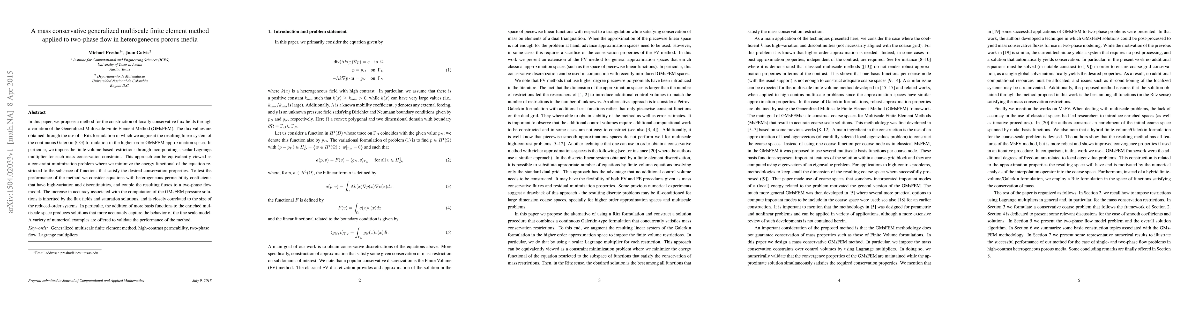 A new method for simulating two-phase flow in heterogeneous porous media with high accuracy is proposed, using a variation of the Generalized Multiscale Finite Element Method that ensures mass conservation.