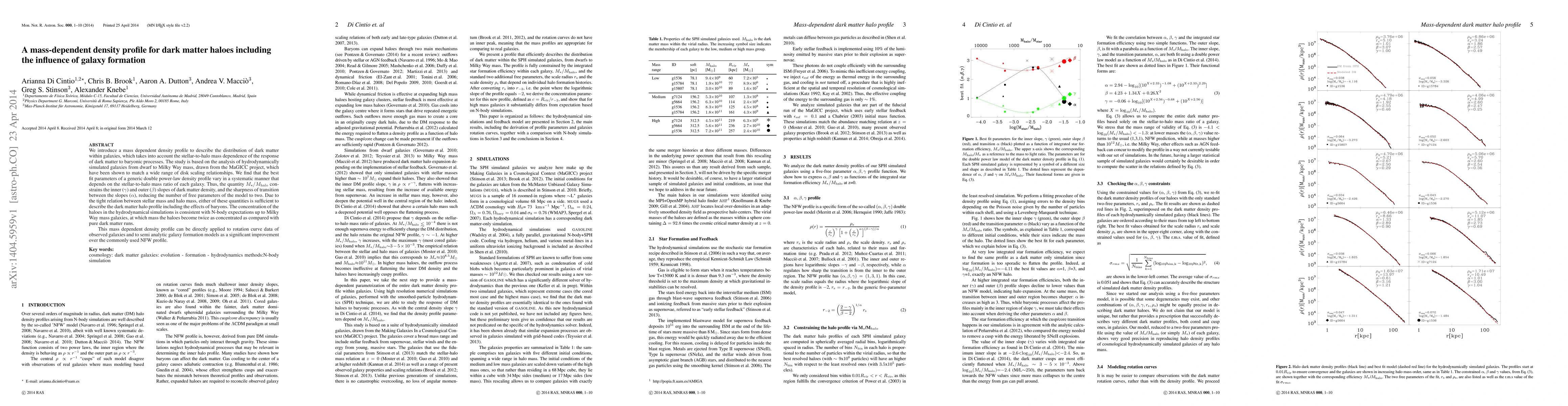 This paper proposes a mass-dependent density profile for dark matter haloes that incorporates the influence of galaxy formation, showing that the density profile's parameters vary systematically with the stellar-to-halo mass ratio. The model reduces the number of free parameters and can be applied to observed galaxies and galaxy formation models.