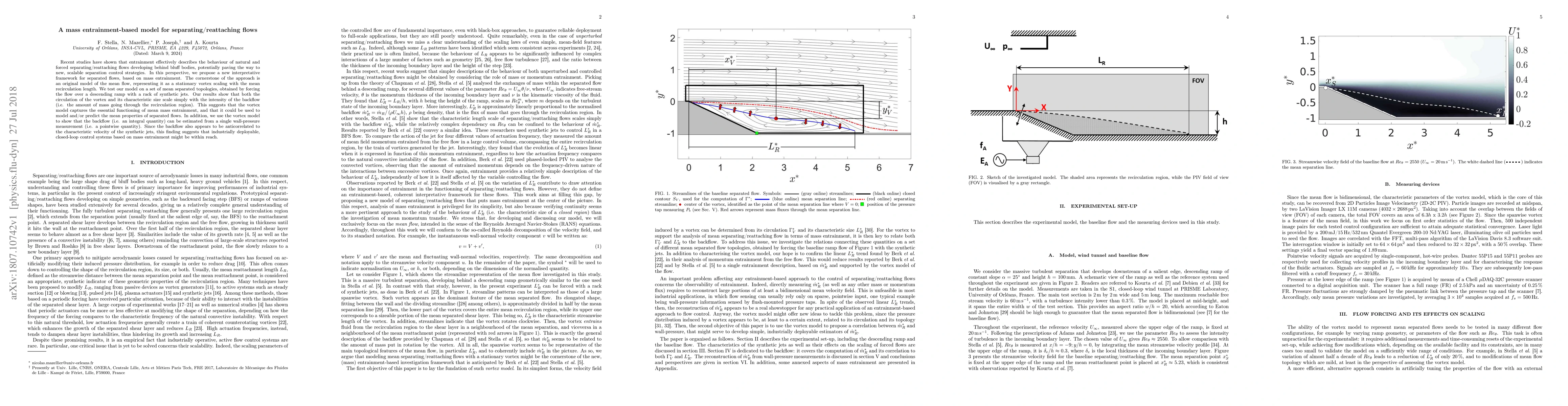 Recent studies have shown that entrainment effectively describes the behaviour of natural and forced separating/reattaching flows developing behind bluff bodies, potentially paving the way to new, scalable separation control strategies. In this perspective, we propose a new interpretative framework for separated flows, based on mass entrainment. The cornerstone of the approach is an original model of the mean flow, representing it as a stationary vortex scaling with the mean recirculation length. We test our model on a set of mean separated topologies, obtained by forcing the flow over a descending ramp with a rack of synthetic jets. Our results show that both the circulation of the vortex and its characteristic size scale simply with the intensity of the backflow (i.e. the amount of mass going through the recirculation region). This suggests that the vortex model captures the essential functioning of mean mass entrainment, and that it could be used to model and/or predict the mean properties of separated flows. In addition, we use the vortex model to show that the backflow (i.e. an integral quantity) can be estimated from a single wall-pressure measurement (i.e. a pointwise quantity). Since the backflow also appears to be anticorrelated to the characteristic velocity of the synthetic jets, this finding suggests that industrially deployable, closed-loop control systems based on mass entrainment might be within reach.