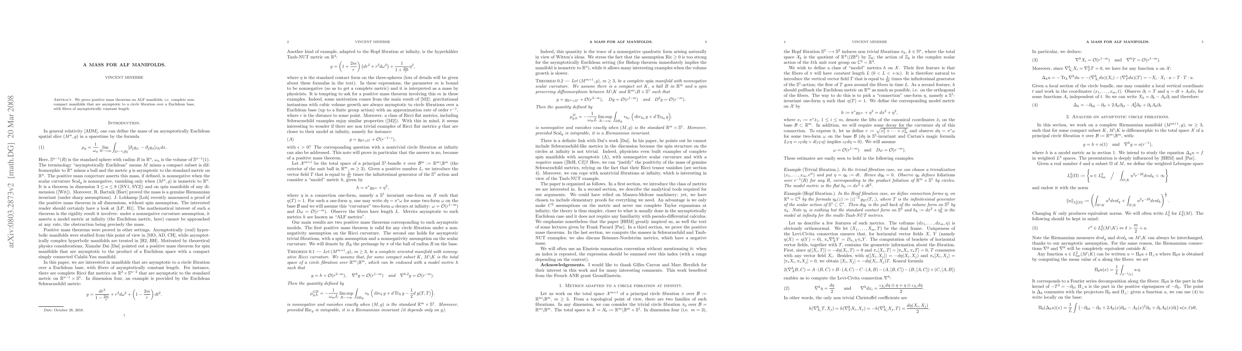 Researchers prove positive mass theorems on a specific type of manifold known as ALF manifolds, which have unique properties that prevent them from containing non-trivial amounts of mass.