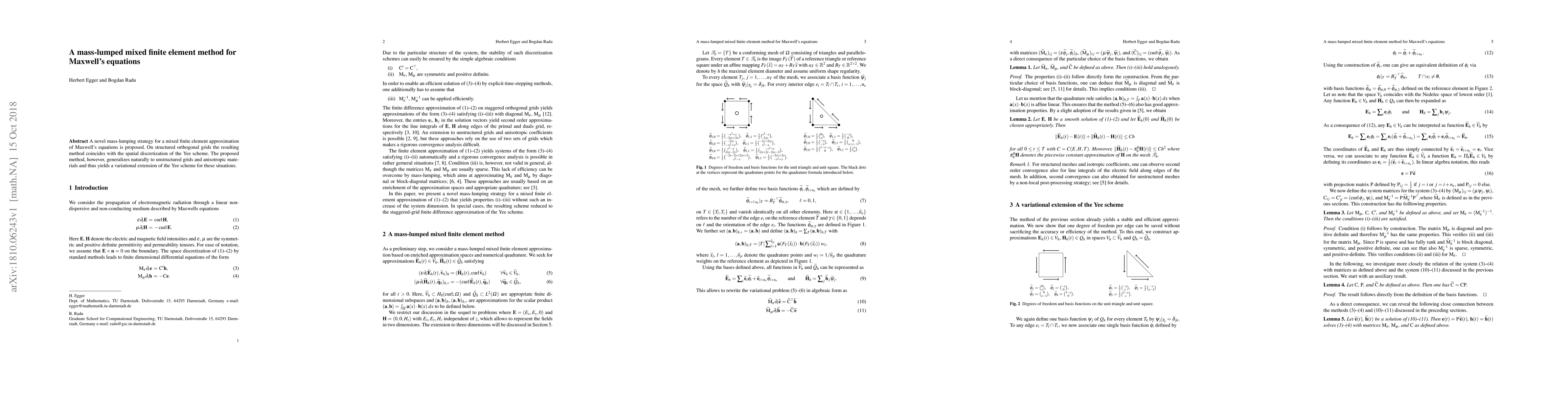 A mass-lumped mixed finite element method for Maxwell's equations is proposed