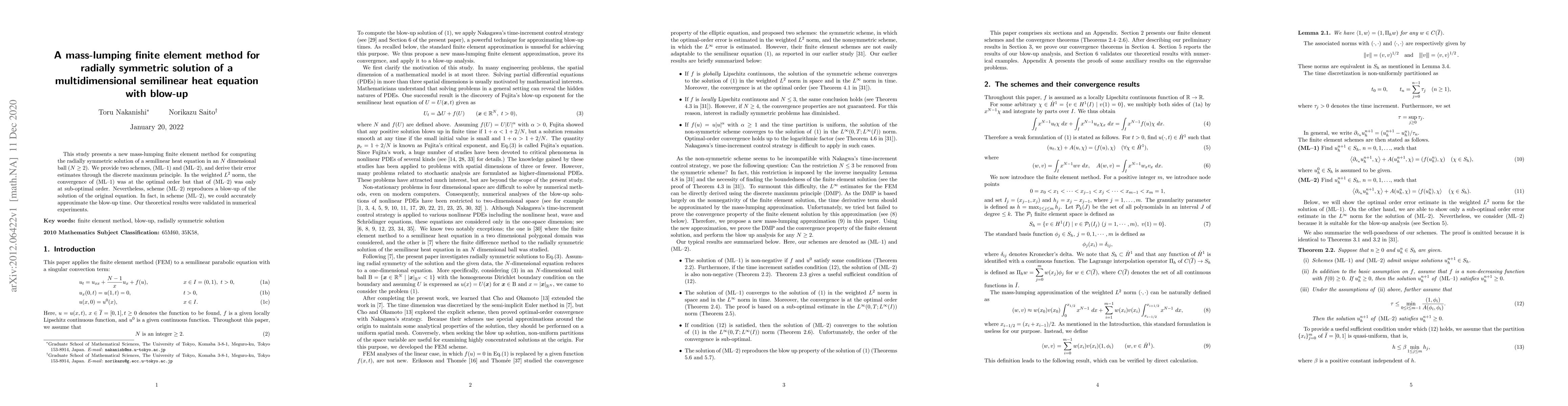 This study presents a new mass-lumping finite element method for computing the radially symmetric solution of a semilinear heat equation in an $N$ dimensional ball ($N\ge 2$). We provide two schemes, (ML-1) and (ML-2), and derive their error estimates through the discrete maximum principle. In the weighted $L^{2}$ norm, the convergence of (ML-1) was at the optimal order but that of (ML-2) was only at sub-optimal order. Nevertheless, scheme (ML-2) reproduces a blow-up of the solution of the original equation. In fact, in scheme (ML-2), we could accurately approximate the blow-up time. Our theoretical results were validated in numerical experiments.