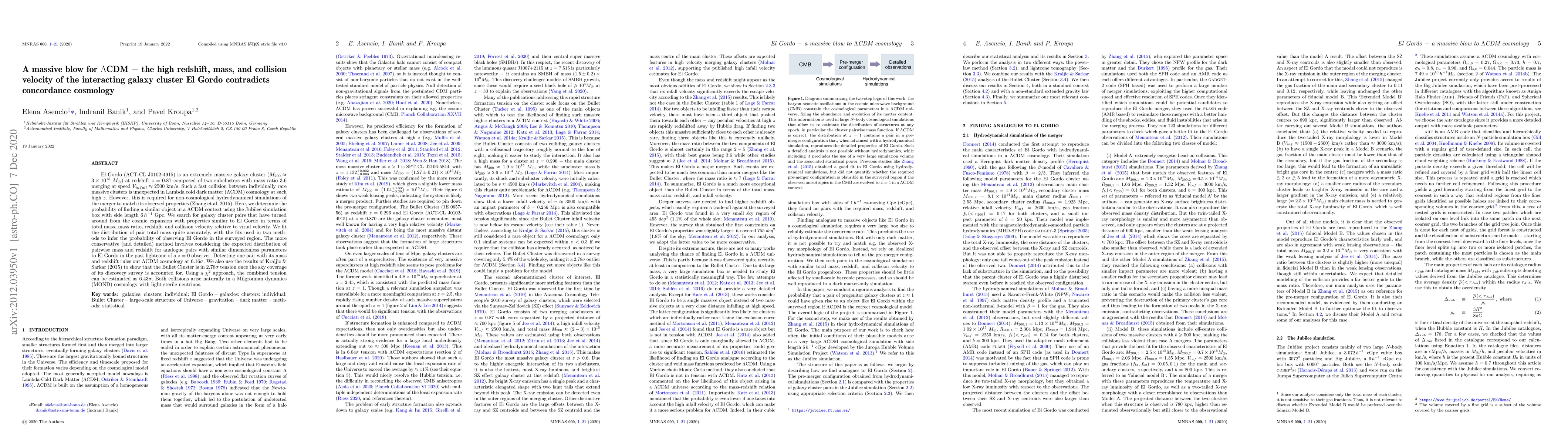 This paper finds that the massive galaxy cluster El Gordo, merging at high speed and redshift, contradicts predictions of the $\Lambda$CDM cosmology. The analysis suggests a $6.16\sigma$ tension with the $\Lambda$CDM model, supporting alternative theories like Milgromian dynamics.