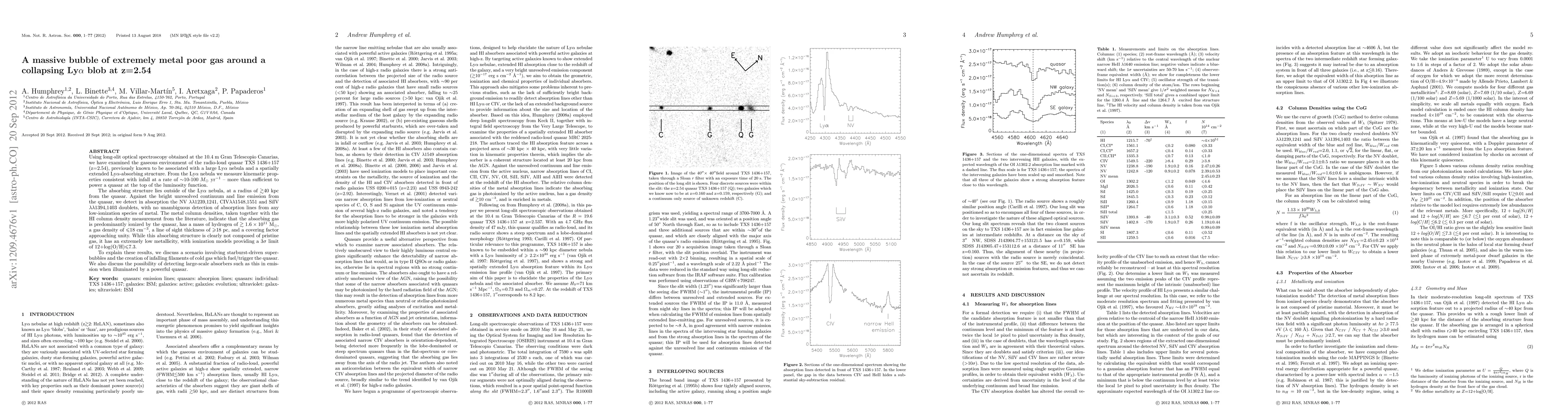 A massive bubble of extremely metal-poor gas surrounds a collapsing Ly-alpha blob at a quasar, powered by infall from a starburst-driven super-bubble. The absorbing structure has a low metallicity, approaching unity covering factor, and is ionized by the quasar.