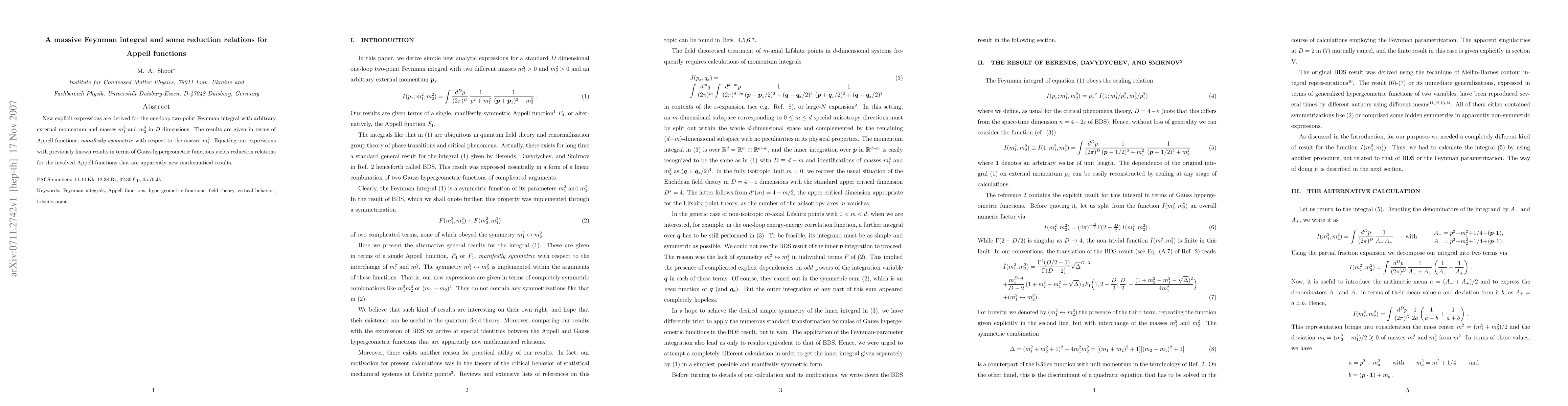 This paper derives new explicit expressions for a one-loop two-point Feynman integral in terms of Appell functions, revealing previously unknown reduction relations for these functions when compared to Gauss hypergeometric functions.