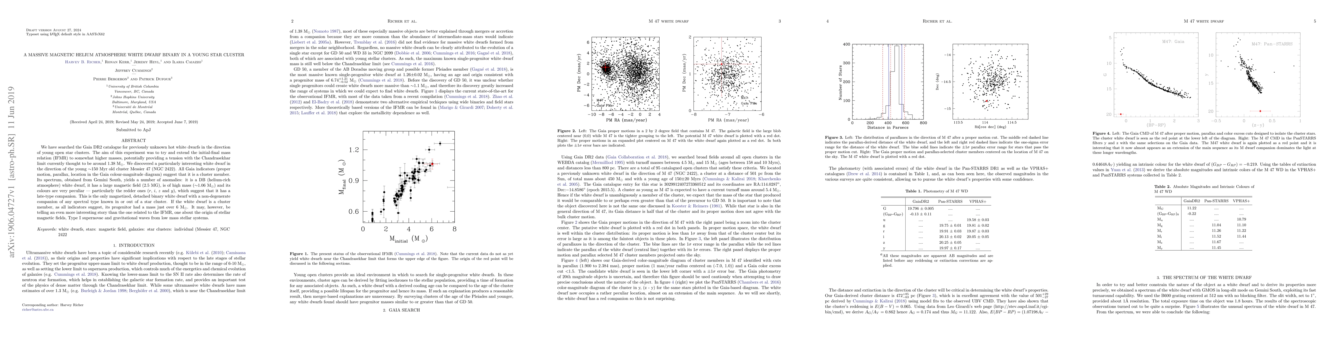 We have searched the Gaia DR2 catalogue for previously unknown hot white dwarfs in the direction of young open star clusters. The aim of this experiment was to try and extend the initial-final mass relation (IFMR) to somewhat higher masses, potentially providing a tension with the Chandrasekhar limit currently thought to be around 1.38 M$_{\odot}$. We discovered a particularly interesting white dwarf in the direction of the young $\sim$150 Myr old cluster Messier 47 (NGC 2422). All Gaia indicators (proper motion, parallax, location in the Gaia colour-magnitude diagram) suggest that it is a cluster member. Its spectrum, obtained from Gemini South, yields a number of anomalies: it is a DB (helium-rich atmosphere) white dwarf, it has a large magnetic field (2.5 MG), is of high mass ($\sim$1.06 M$_\odot$) and its colours are very peculiar --- particularly the redder ones ($r$, $i$, $z$ and $y$), which suggest that it has a late-type companion. This is the only magnetized, detached binary white dwarf with a non-degenerate companion of any spectral type known in or out of a star cluster. If the white dwarf is a cluster member, as all indicators suggest, its progenitor had a mass just over 6 M$_\odot$. It may, however, be telling an even more interesting story than the one related to the IFMR, one about the origin of stellar magnetic fields, Type I supernovae and gravitational waves from low mass stellar systems.