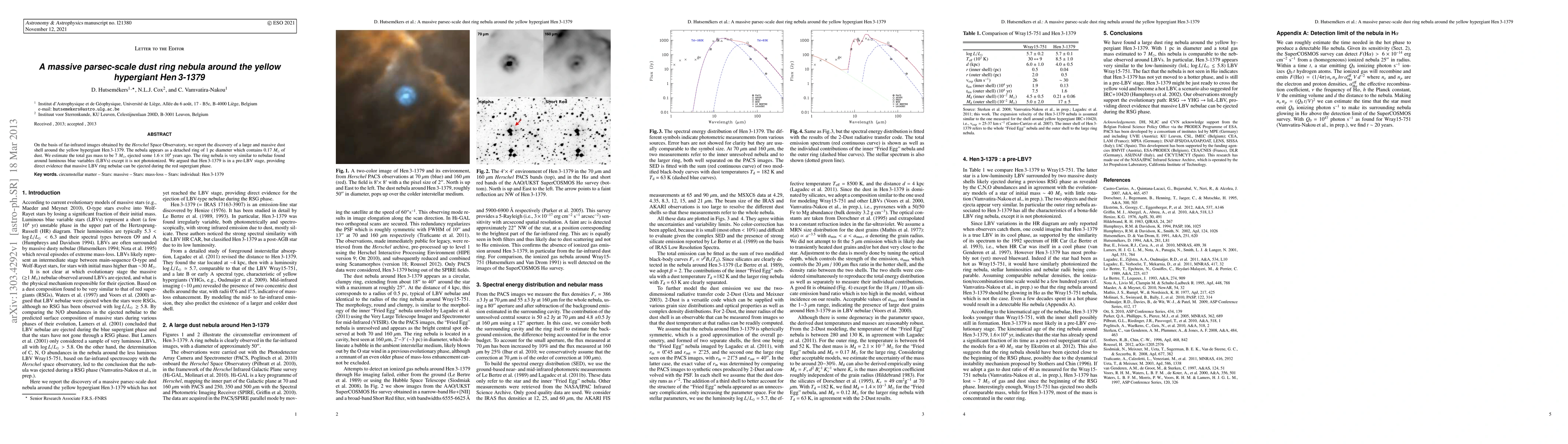 Summary: Herschel Space Observatory images reveal a large, massive dust ring nebula around the yellow hypergiant Hen3-1379, suggesting it is in a pre-Luminous Blue Variable (pre-LBV) stage, similar to LBV ring nebulae but not photoionized, indicating dust ejection during the red supergiant phase.