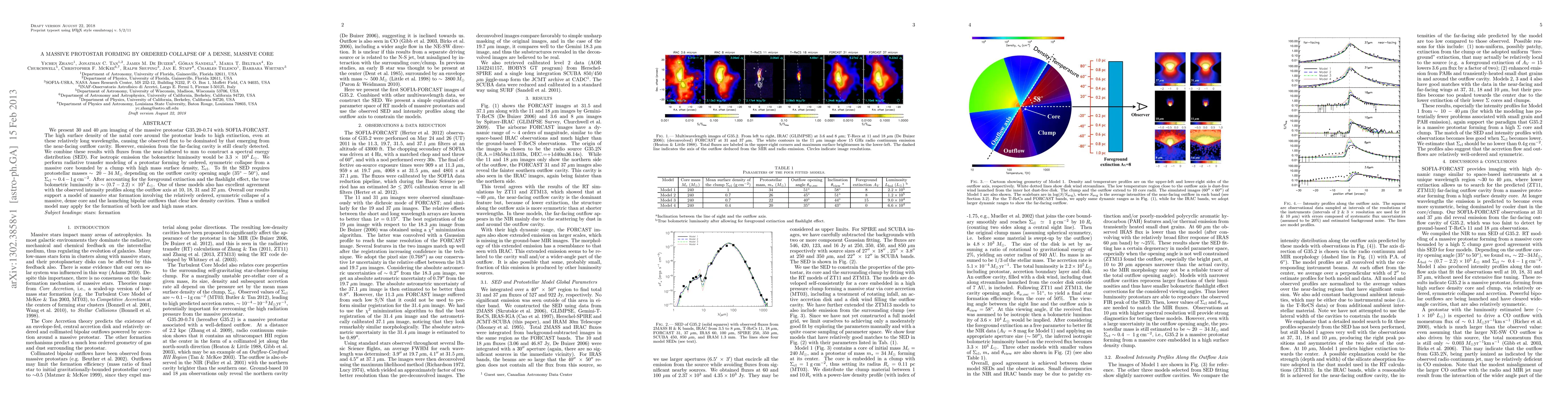 This study uses SOFIA-FORCAST imaging to analyze the massive protostar G35.20-0.74, revealing high extinction and flux dominated by near-facing outflow cavities. Radiative transfer modeling suggests protostellar masses of 20-34 Msun and supports a model of ordered, symmetric collapse from a dense core, indicating a unified star formation process for both low and high mass stars.