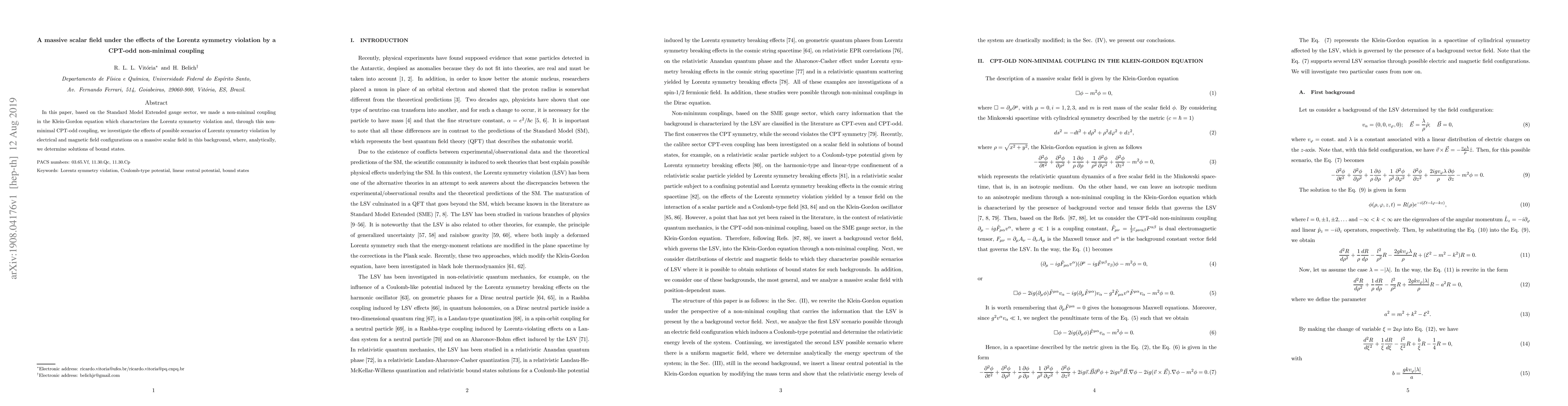 This paper investigates the effects of Lorentz symmetry violation on a massive scalar field in specific electrical and magnetic field configurations, using a non-minimal coupling. It analytically determines solutions for bound states under these conditions.