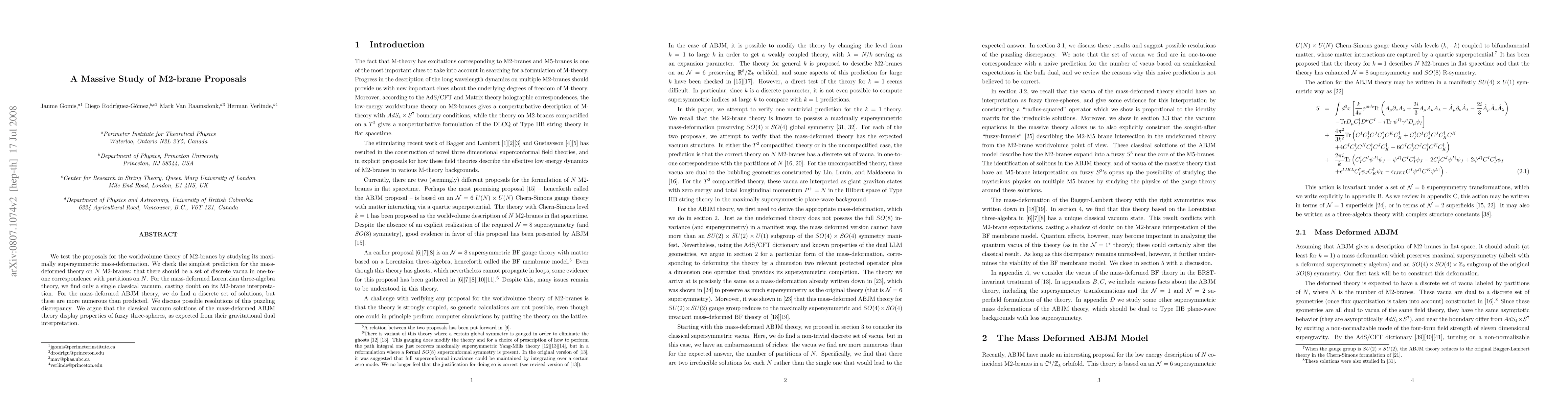 We test the proposals for the worldvolume theory of M2-branes by studying its maximally supersymmetric mass-deformation. We check the simplest prediction for the mass-deformed theory on N M2-branes: that there should be a set of discrete vacua in one-to-one correspondence with partitions on N. For the mass-deformed Lorentzian three-algebra theory, we find only a single classical vacuum, casting doubt on its M2-brane interpretation. For the mass-deformed ABJM theory, we do find a discrete set of solutions, but these are more numerous than predicted. We discuss possible resolutions of this puzzling discrepancy. We argue that the classical vacuum solutions of the mass-deformed ABJM theory display properties of fuzzy three-spheres, as expected from their gravitational dual interpretation.