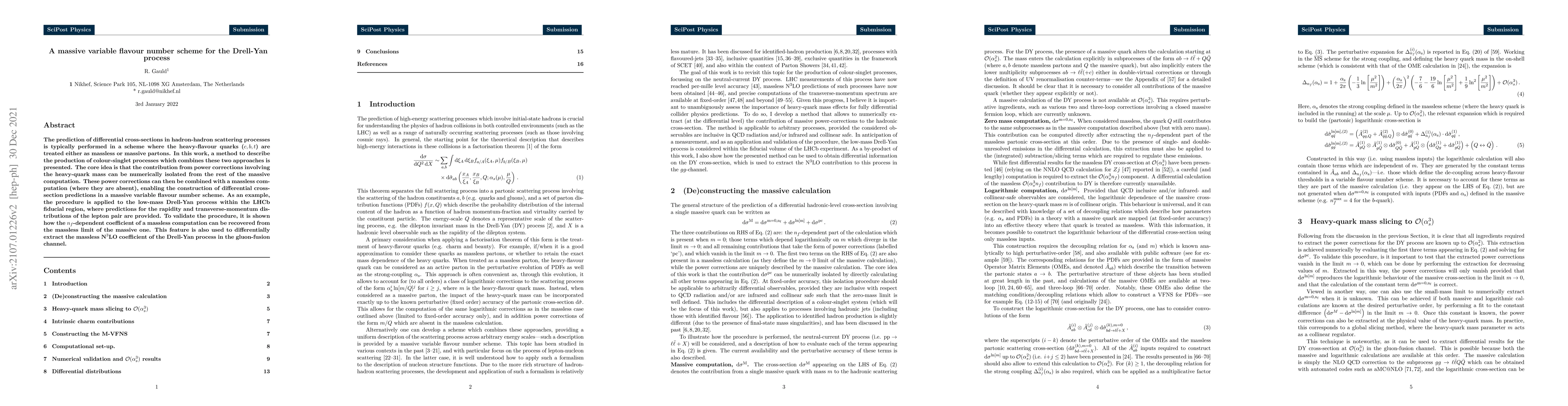 Researchers developed a new method to calculate differential cross-sections in particle collisions, combining heavy-quark mass effects with massless computations, enabling more accurate predictions for rare processes like the Drell-Yan process.