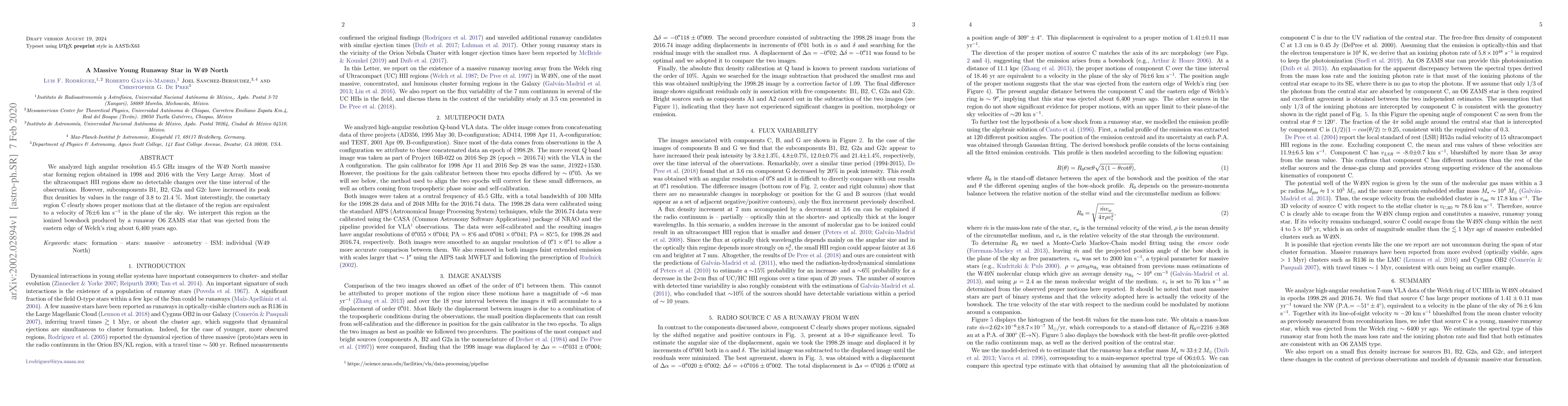 We analyzed high angular resolution 45.5 GHz images of the W49 North massive star forming region obtained in 1998 and 2016 with the Very Large Array. Most of the ultracompact HII regions show no detectable changes over the time interval of the observations. However, subcomponents B1, B2, G2a and G2c have increased its peak flux densities by values in the range of 3.8 to 21.4 \%. Most interestingly, the cometary region C clearly shows proper motions that at the distance of the region are equivalent to a velocity of 76$\pm$6 km s$^{-1}$ in the plane of the sky. We interpret this region as the ionized bowshock produced by a runaway O6 ZAMS star that was ejected from the eastern edge of Welch's ring about 6,400 years ago.