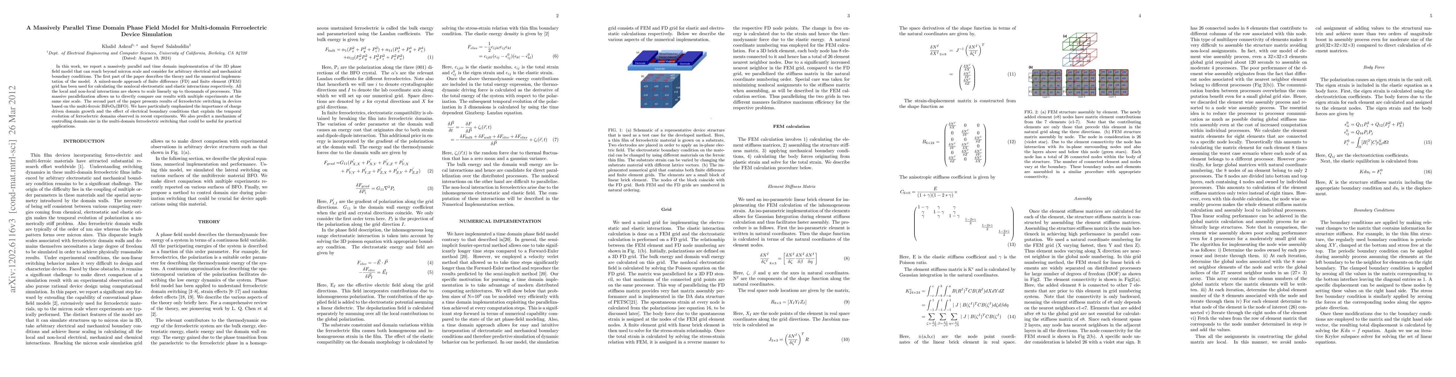 In this work, we report a massively parallel and time domain implementation of the 3D phase field model that can reach beyond micron scale and consider for arbitrary electrical and mechanical boundary conditions. The first part of the paper describes the theory and the numerical implementation of the model. A mixed-mode approach of finite difference and finite element grid has been used for calculating the nonlocal electrostatic and elastic interactions respectively. All the local and non-local interactions are shown to scale linearly up to thousands of processors. This massive parallelization allows us to directly compare our results with multiple experiments at the same size scale. The second part of the paper presents results of ferroelectric switching in devices based on the multi-ferroic BiFeO$_{3}$. We have particularly emphasized the importance of charge driven domain growth and the effect of electrical boundary conditions that explain the temporal evolution of ferroelectric domains observed in recent experiments. We also predict a mechanism of controlling domain size in the multi-domain ferroelectric switching that could be useful for practical applications.