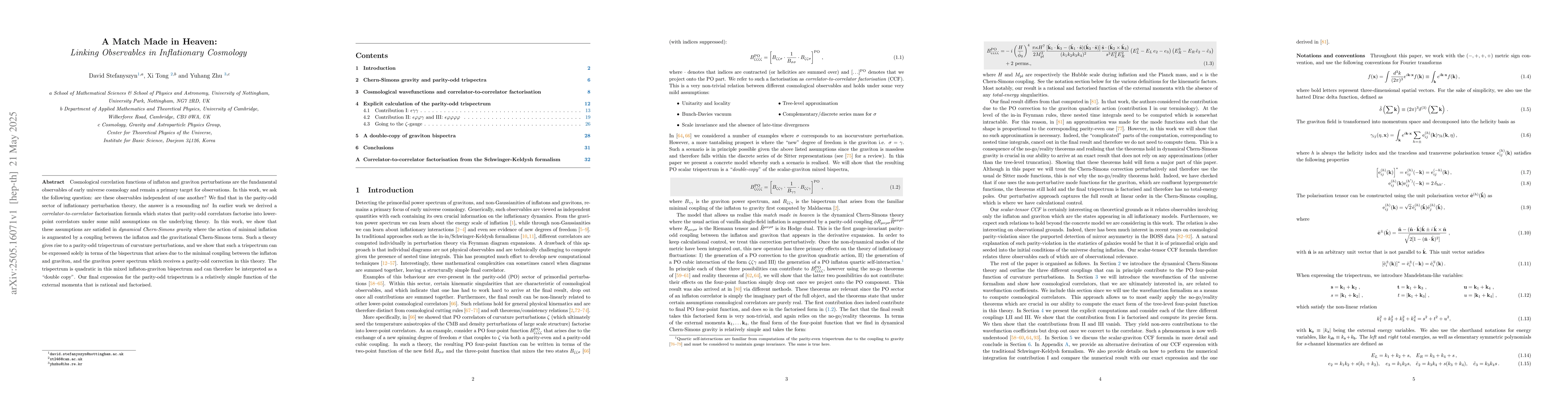 The paper presents a correlator-to-correlator factorisation formula and demonstrates its validity in dynamical Chern-Simons gravity, linking observables in inflationary cosmology in a novel way.