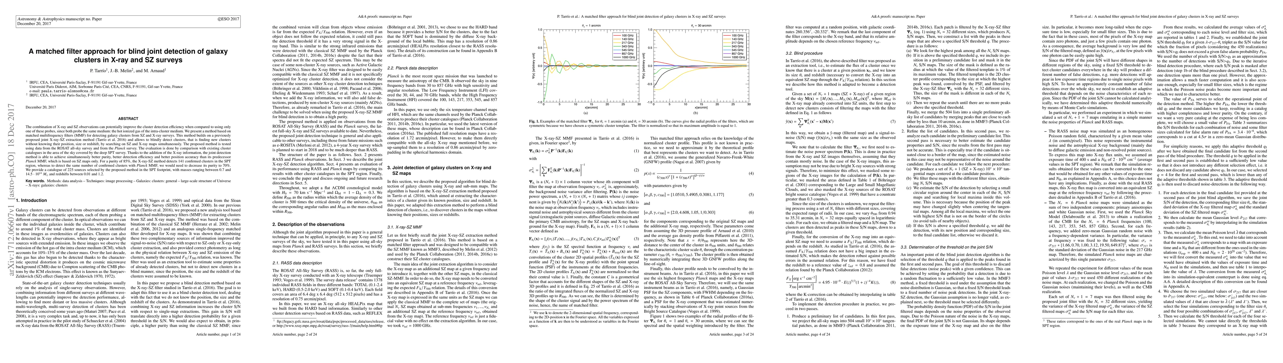 This paper introduces a matched filter approach combining X-ray and Sunyaev-Zel'dovich (SZ) observations to enhance galaxy cluster detection efficiency. The method, based on matched multifrequency filters, improves detection purity, efficiency, and position accuracy compared to using SZ data alone, as demonstrated through ROSAT and Planck survey data.