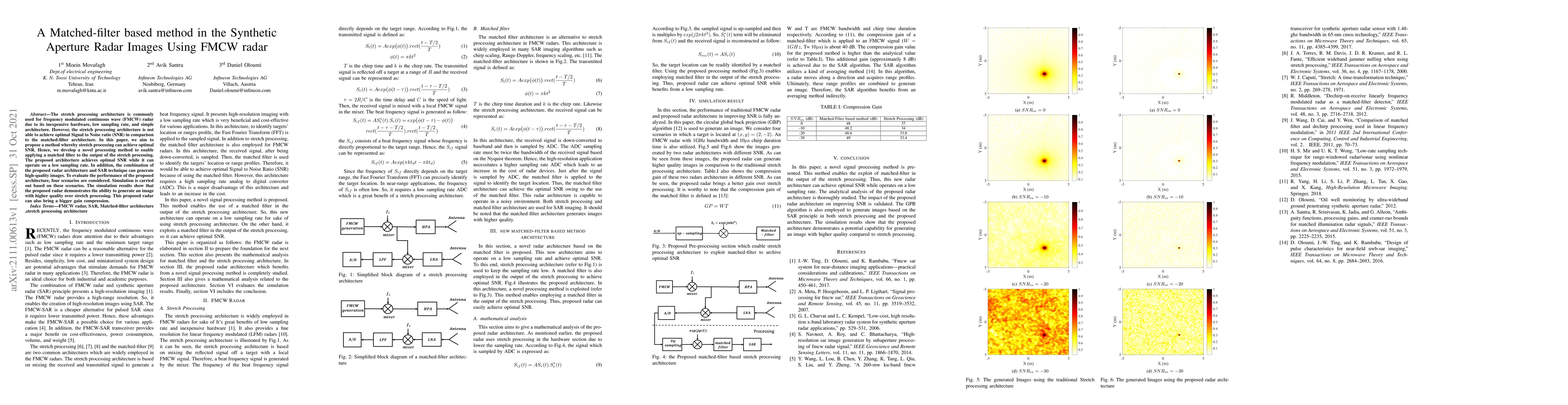 The stretch processing architecture is commonly used for frequency modulated continuous wave (FMCW) radar due to its inexpensive hardware, low sampling rate, and simple architecture. However, the stretch processing architecture is not able to achieve optimal Signal to Noise ratio (SNR) in comparison to the matched-filter architecture. In this paper, we aim to propose a method whereby stretch processing can achieve optimal SNR. Hence, we develop a novel processing method to enable applying a matched filter to the output of the stretch processing. The proposed architecture achieves optimal SNR while it can operate on a low sampling rate. In addition, the combination of the proposed radar architecture and SAR technique can generate high-quality images. To evaluate the performance of the proposed architecture, four scenarios are considered. Simulation is carried out based on these scenarios. The simulation results show that the proposed radar demonstrates the ability to generate an image with higher quality over stretch processing. This proposed radar can also bring a bigger gain compression.