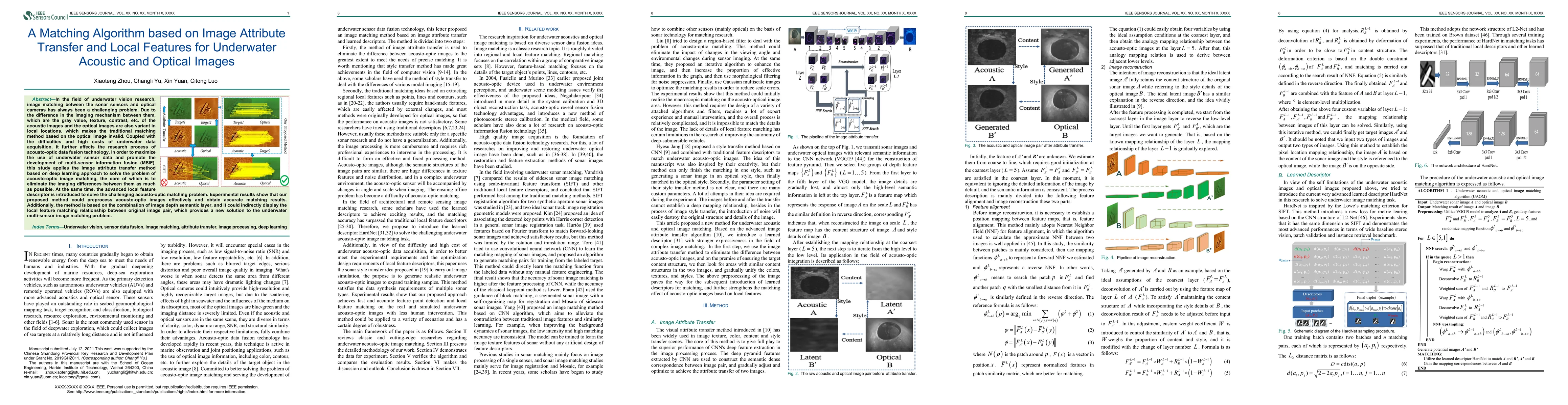 A new method uses image attribute transfer and local features to match underwater acoustic and optical images, overcoming traditional optical matching methods' limitations.