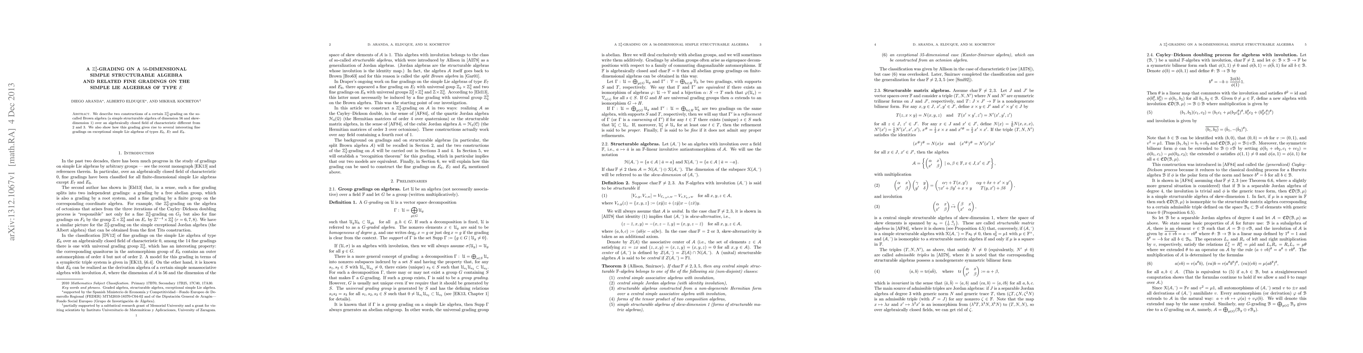 We describe two constructions of a certain $\mathbb{Z}_4^3$-grading on the so-called Brown algebra (a simple structurable algebra of dimension 56 and skew-dimension 1) over an algebraically closed field of characteristic different from 2 and 3. We also show how this grading gives rise to several interesting fine gradings on exceptional simple Lie algebras of types E6, E7 and E8.