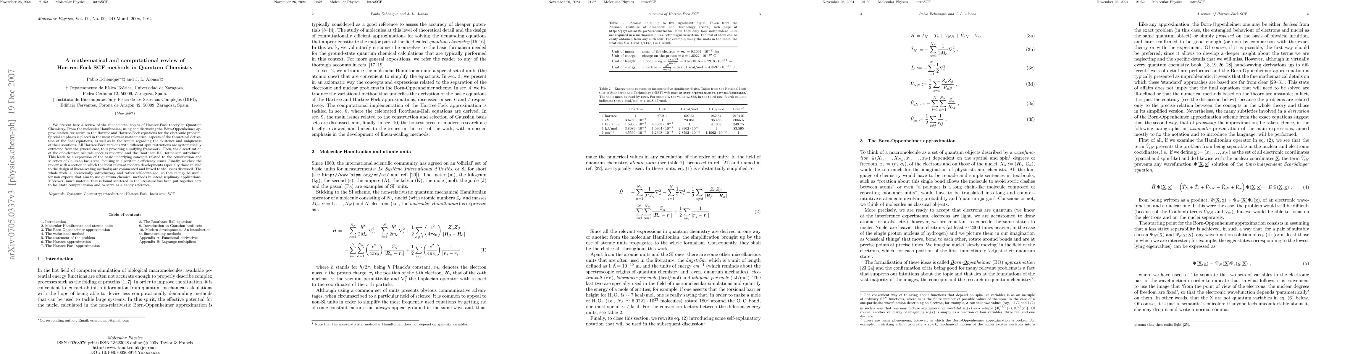 This paper provides a comprehensive review of Hartree-Fock theory in quantum chemistry, focusing on the mathematical derivation of the Hartree-Fock equations and the existence of their solutions. It also covers the discretization of orbitals, the Roothaan-Hall formalism, and Gaussian basis sets, concluding with modern developments in linear-scaling methods.