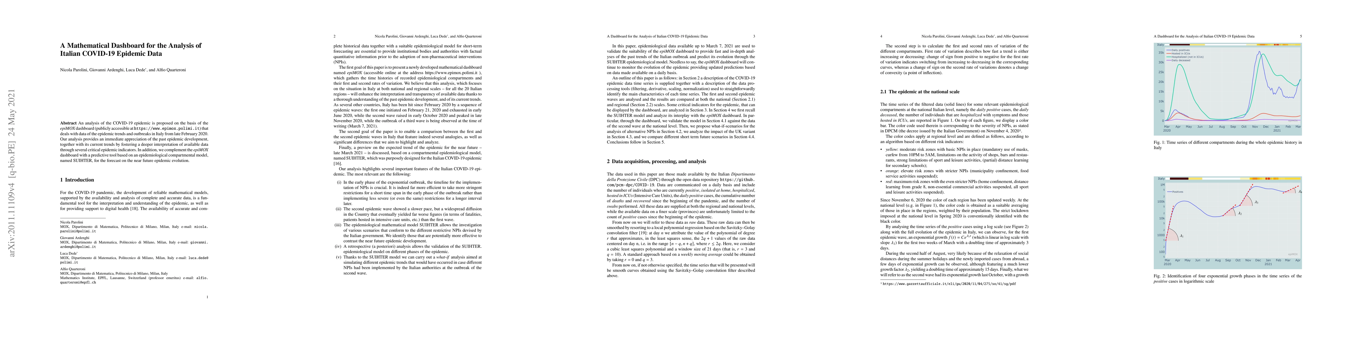 This paper introduces the epiMOX dashboard for analyzing Italy's COVID-19 epidemic trends, offering insights into past developments and current trends through various critical indicators. It also includes a predictive tool, SUIHTER, based on an epidemiological model to forecast future epidemic evolution.