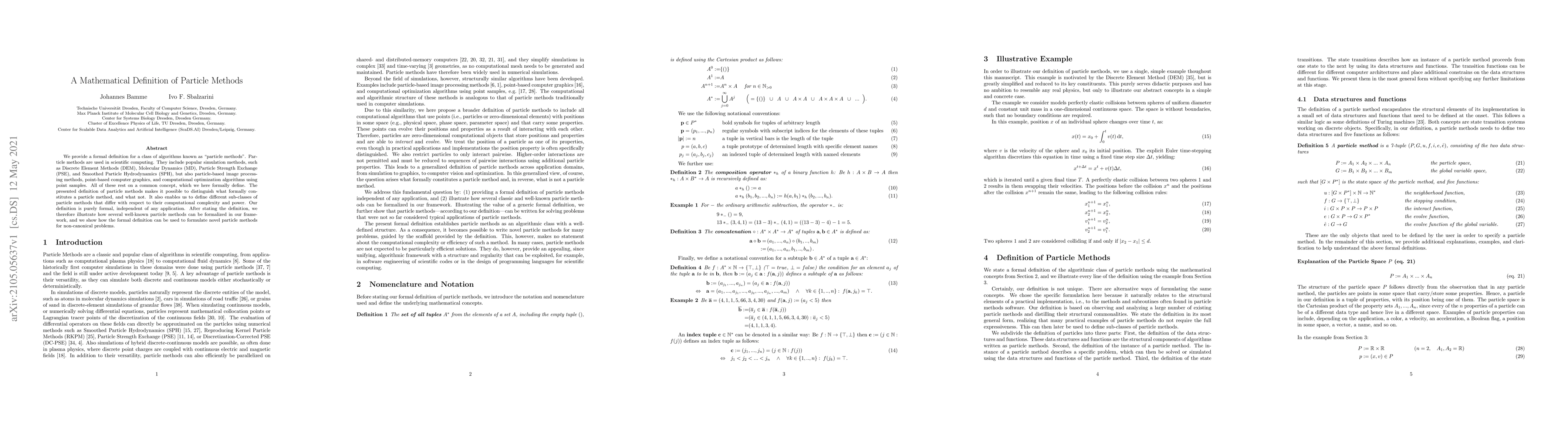 This paper formally defines particle methods, encompassing a broad range of scientific computing techniques including Discrete Element Methods, Molecular Dynamics, and Smoothed Particle Hydrodynamics. The definition allows for the classification of various particle-based algorithms and facilitates the development of new methods for non-canonical problems.
