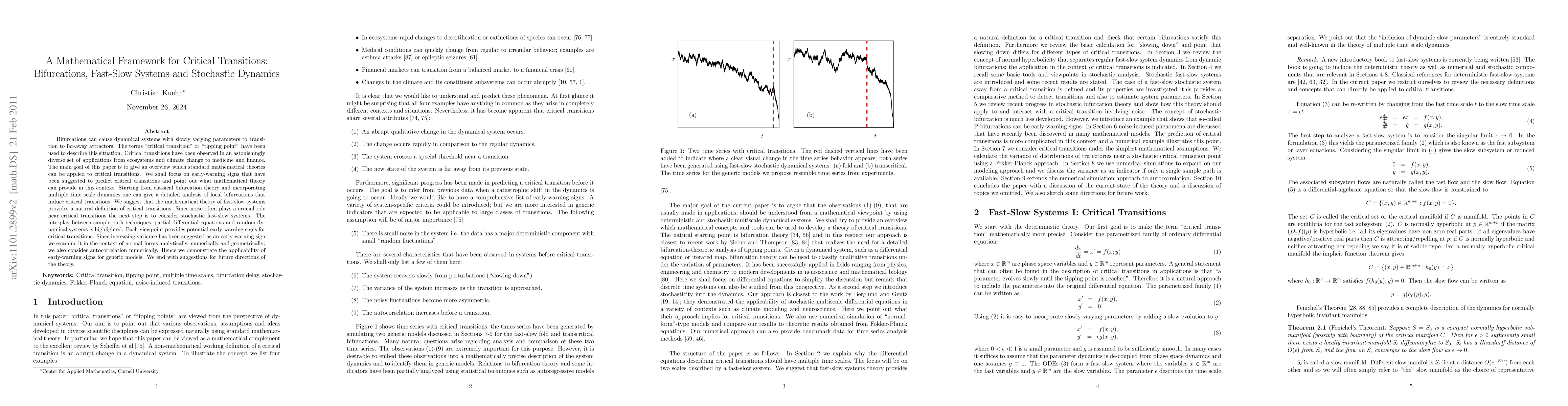 This paper explores mathematical frameworks for predicting critical transitions in complex systems, which can lead to sudden changes in behavior, such as bifurcations, fast-slow systems, and stochastic dynamics.