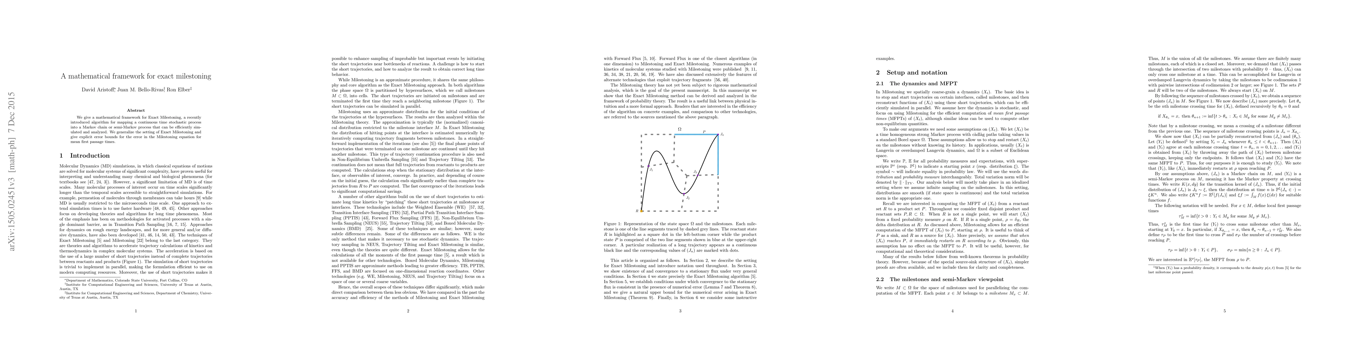 Researchers develop a mathematical framework for Exact Milestoning, a method to simulate and analyze continuous time stochastic processes. The new framework provides explicit error bounds for the algorithm's accuracy in calculating mean first passage times.