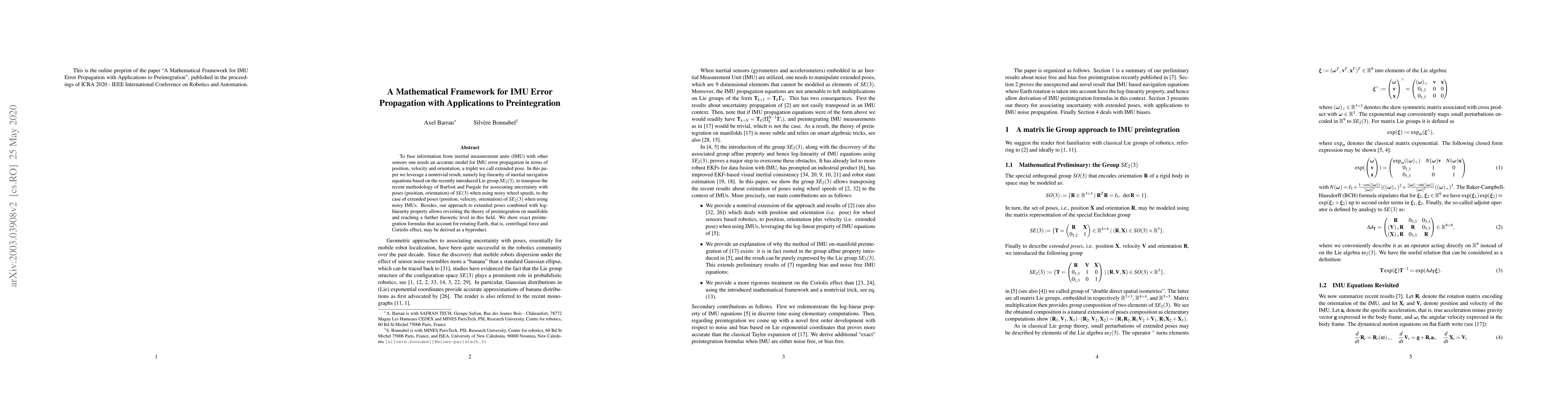 The research paper leverages log-linearity of inertial navigation equations based on SE_2(3) to transpose the methodology for associating uncertainty with poses from Barfoot and Furgale.