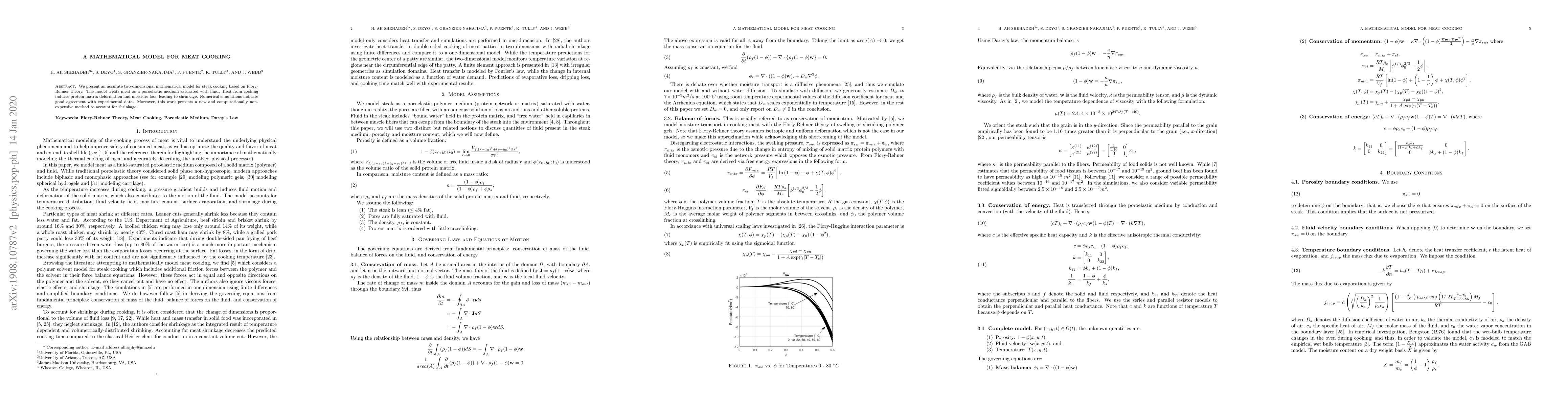 We present an accurate two-dimensional mathematical model for steak cooking based on Flory-Rehner theory. The model treats meat as a poroelastic medium saturated with fluid. Heat from cooking induces protein matrix deformation and moisture loss, leading to shrinkage. Numerical simulations indicate good agreement with multiple sources of experimental data. Moreover, this work presents a new and computationally non-expensive method to account for shrinkage.
