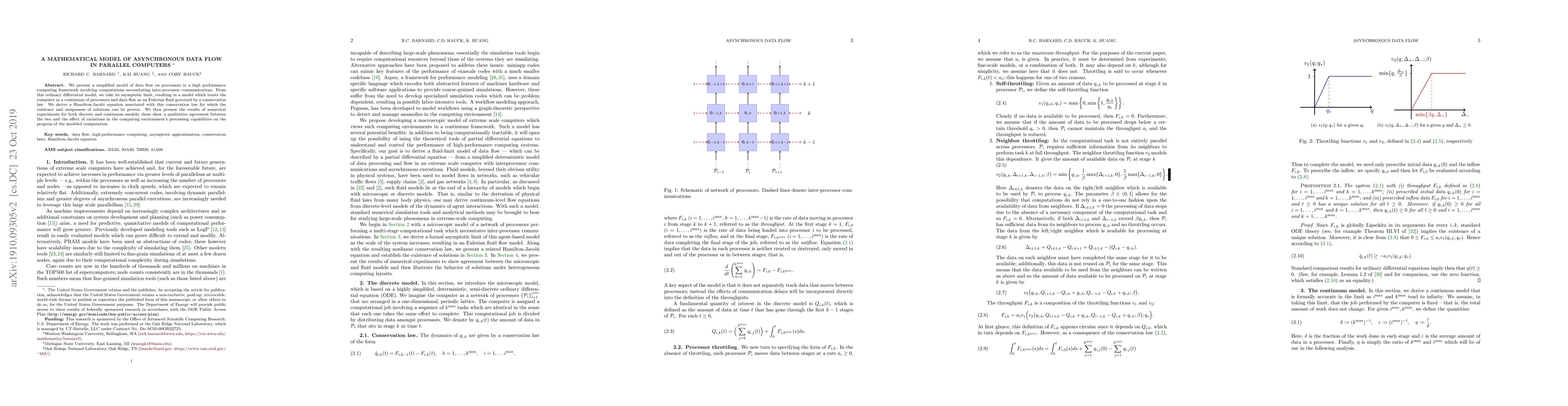 We present a simplified model of data flow on processors in a high performance computing framework involving computations necessitating inter-processor communications. From this ordinary differential model, we take its asymptotic limit, resulting in a model which treats the computer as a continuum of processors and data flow as an Eulerian fluid governed by a conservation law. We derive a Hamilton-Jacobi equation associated with this conservation law for which the existence and uniqueness of solutions can be proven. We then present the results of numerical experiments for both discrete and continuum models; these show a qualitative agreement between the two and the effect of variations in the computing environment's processing capabilities on the progress of the modeled computation.