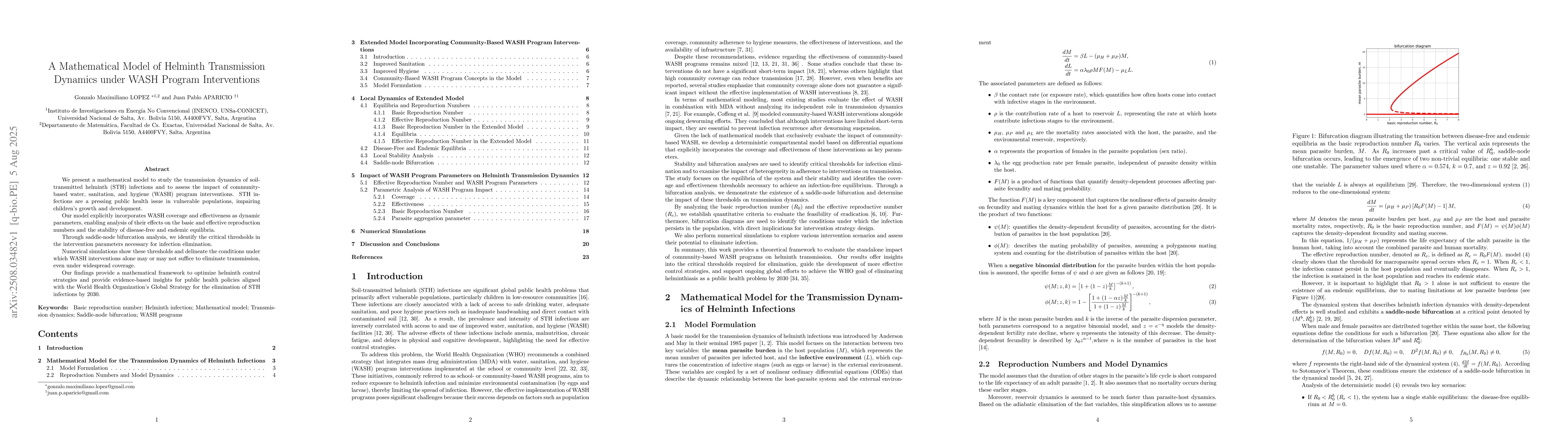 We present a mathematical model to study the transmission dynamics of soil-transmitted helminth (STH) infections and to assess the impact of community-based water, sanitation, and hygiene (WASH) program interventions. STH infections are a pressing public health issue in vulnerable populations, impairing children's growth and development. Our model explicitly incorporates WASH coverage and effectiveness as dynamic parameters, enabling analysis of their effects on the basic and effective reproduction numbers and the stability of disease-free and endemic equilibria. Through saddle-node bifurcation analysis, we identify the critical thresholds in the intervention parameters necessary for infection elimination. Numerical simulations show these thresholds and delineate the conditions under which WASH interventions alone may or may not suffice to eliminate transmission, even under widespread coverage. Our findings provide a mathematical framework to optimize helminth control strategies and provide evidence-based insights for public health policies aligned with the World Health Organization's Global Strategy for the elimination of STH infections by 2030.