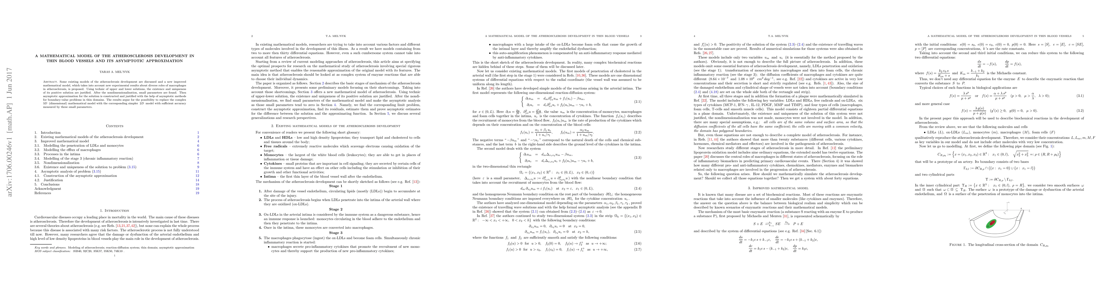 Researchers propose a new mathematical model to study atherosclerosis in thin blood vessels, showing that a 2D model can accurately capture the complex process with small parameters.