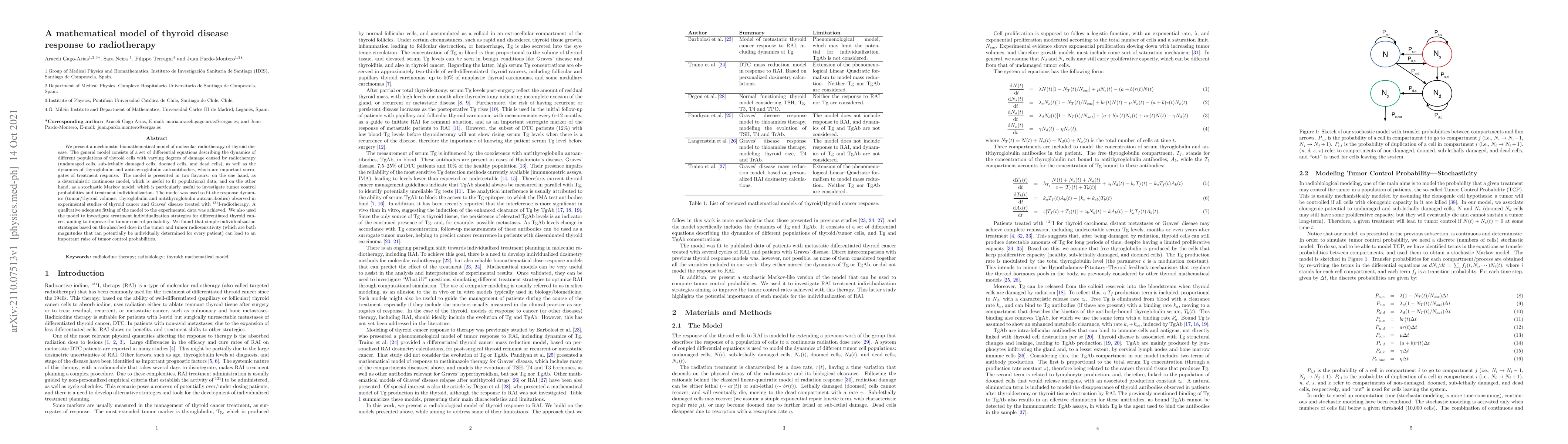 This paper introduces a biomathematical model to describe the dynamics of thyroid cells during radiotherapy, including undamaged, damaged, and dead cells, as well as thyroglobulin and autoantibodies. The model aids in fitting experimental data and provides insights into individualized treatment strategies to enhance tumor control in thyroid cancer.