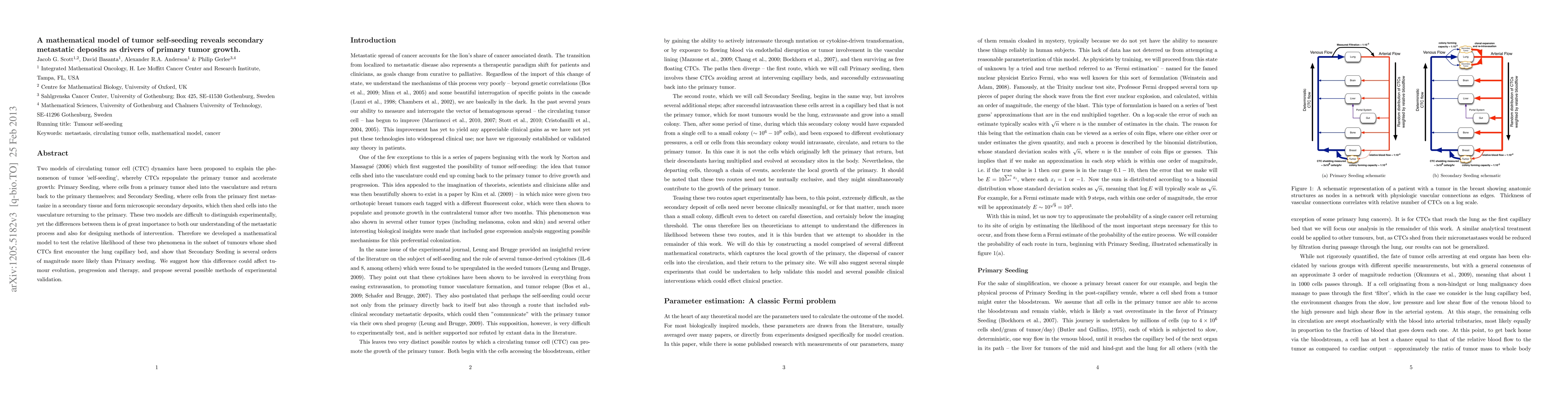 This paper develops a mathematical model to compare two models of tumor self-seeding: Primary Seeding and Secondary Seeding. It finds that Secondary Seeding, where metastatic deposits drive primary tumor growth, is significantly more likely, impacting tumor evolution and therapy design.