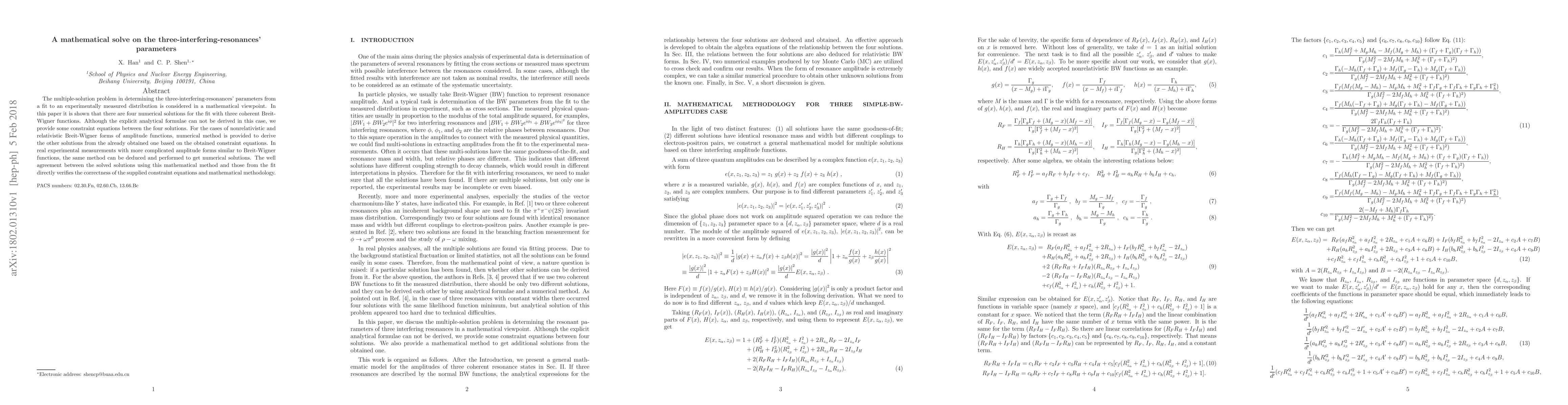 Researchers found four numerical solutions for fitting three interfering resonances to experimental data, and developed a mathematical method to derive these solutions from one of the existing ones, verifying its correctness.