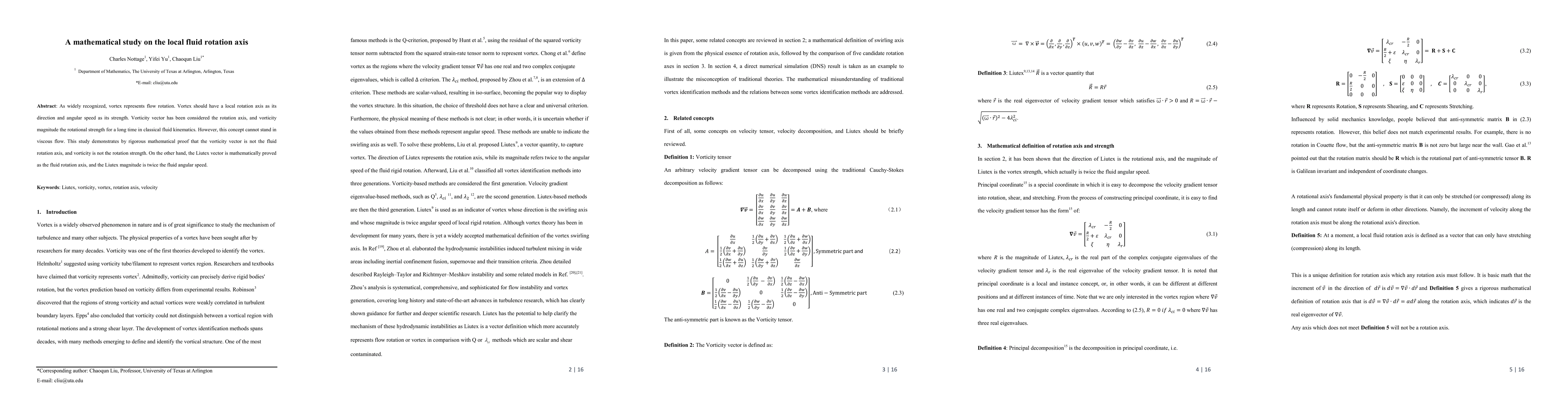 As widely recognized, vortex represents flow rotation. Vortex should have a local rotation axis as its direction and angular speed as its strength. Vorticity vector has been considered the rotation axis, and vorticity magnitude the rotational strength for a long time in classical fluid kinematics. However, this concept cannot stand in viscous flow. This study demonstrates by rigorous mathematical proof that the vorticity vector is not the fluid rotation axis, and vorticity is not the rotation strength. On the other hand, the Liutex vector is mathematically proved as the fluid rotation axis, and the Liutex magnitude is twice the fluid angular speed.
